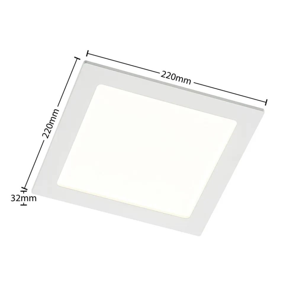 Hvid, lysstærk Helina-indbygningslampe med IP44 og DIP-kontakt til indstilling af lysfarve Helina imponerer på mange måder og er en alsidig lyskilde til både private hjem og erhvervsmiljøer. Med sin højere beskyttelsesgrad er den ideel til brug i fugtige rum som f.eks. badeværelser, og lysfarven kan indstilles på huset før installation ved hjælp af en DIP-kontakt for at få en optimal lysoplevelse. Du har også mulighed for at justere lysstyrken, hvis der findes en ekstern lysdæmper. Udseendet er enkelt og tidløst med den firkantede grundform og den hvide ramme. Den er fremstillet af robust polykarbonat og udstyret med aluminiumsclips på bagsiden – Dæmpbar – Lysfarve kan forudindstilles via DIP-kontakt – IP44, velegnet til brug i fugtige rum – Robust polykarbonathus og aluminiumsclips for nem installation