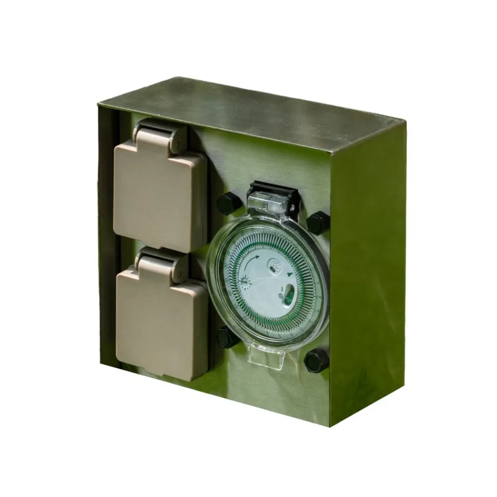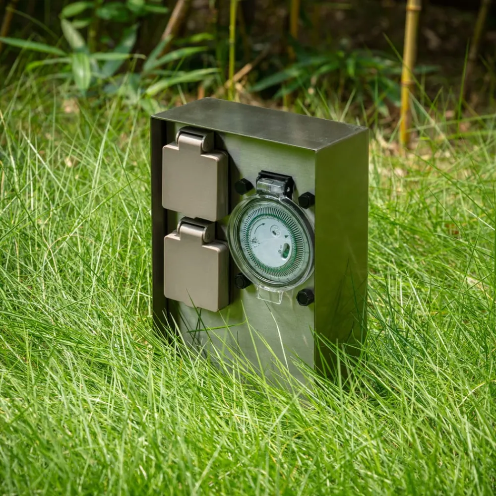 Foranda passer med sit moderne design til moderne udendørs miljøer og er der en pålidelig strømkilde med integreret timer, der kan bruges efter behov til at kunne bruge apparater gentagne gange midlertidigt uden at skulle tænde dem hver gang. Dette er især praktisk, hvis man i en periode ønsker at bruge dekorativ udendørs belysning med stik, som det ofte er tilfældet i juletiden. Med timeren kan lysets varighed og tændingstidspunkt præcist indstilles. Den sorte overflade på det kantede rustfri stålhus er særligt markant og elegant.