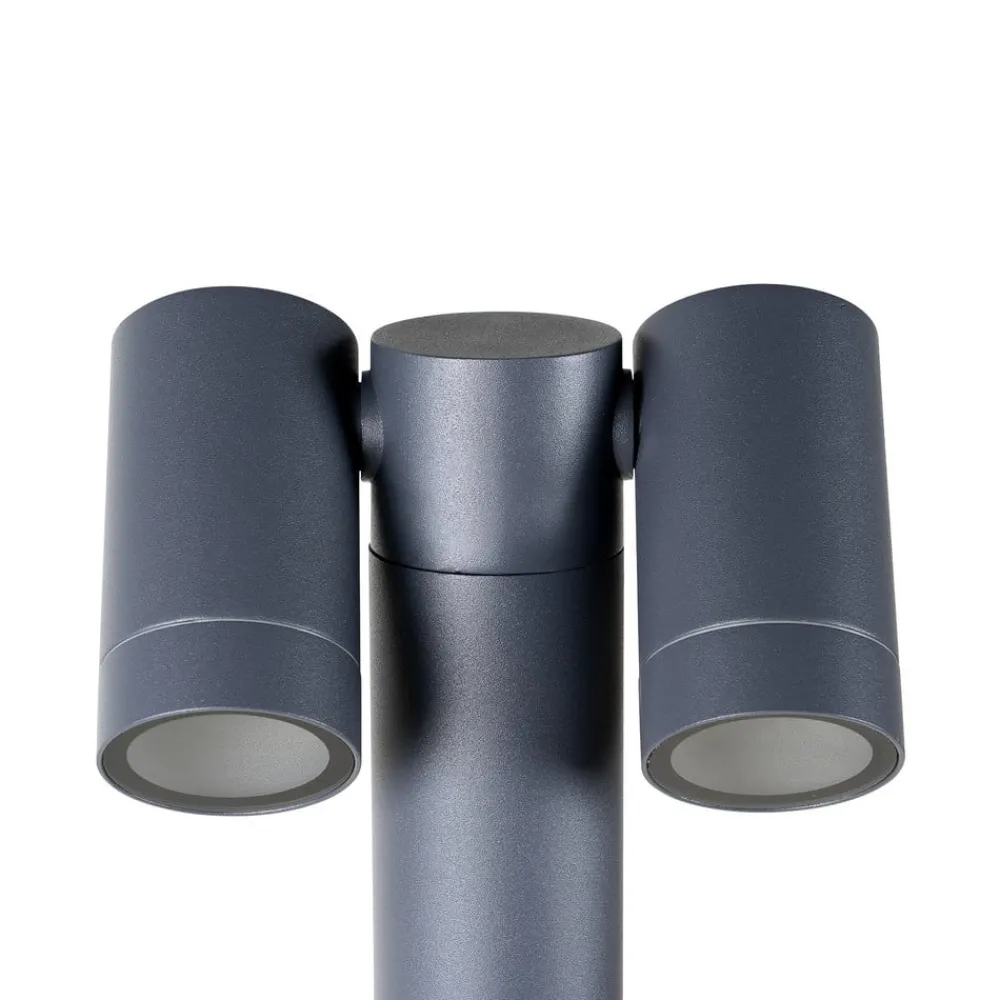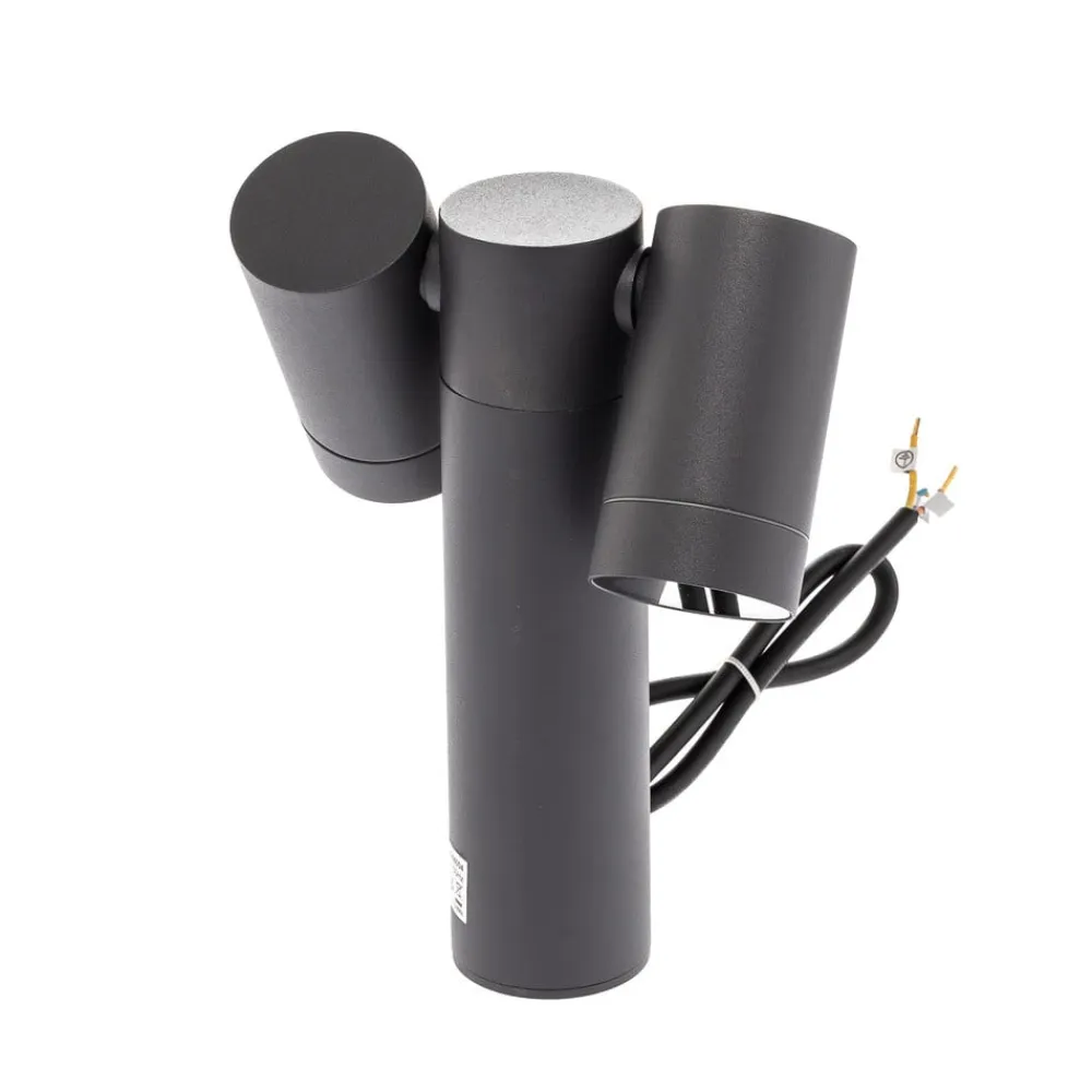 Tulimar spot med jordspyd er yderst praktisk til udendørs brug. Med sine to spots, der kan bevæges uafhængigt af hinanden, kan den belyse indgangsområdet eller havegangen optimalt. Takket være kapslingsgrad IP65 kan denne spotlight bruges langvarigt og pålideligt udendørs. Den mørkegrå overfladefinish passer godt ind i forskellige omgivelser uden at vække opmærksomhed.