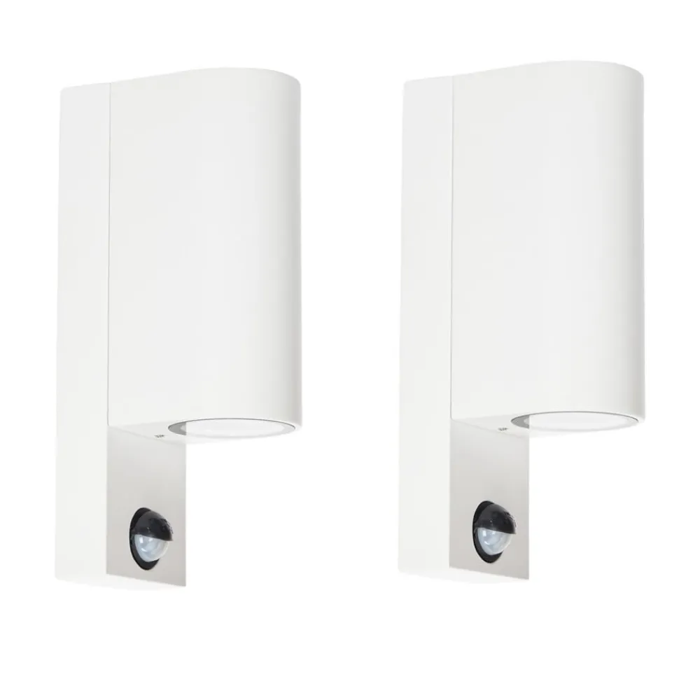 Prios udendørs væglampe Tetje, hvid, rund, sensor, sæt med 2 stk