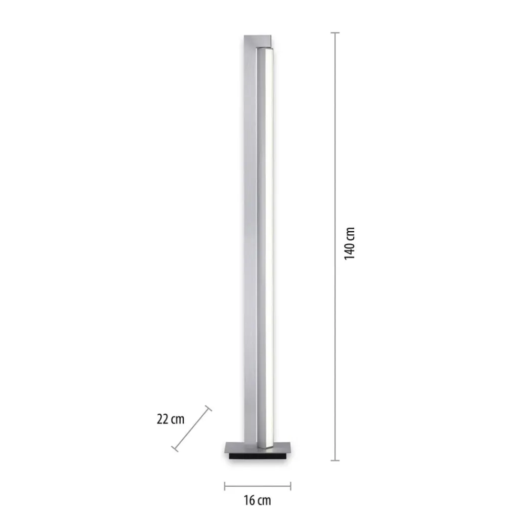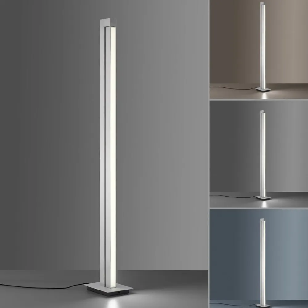 LED-gulvlampe PURE Lines, sølv, fjernbetjening, 140 cm