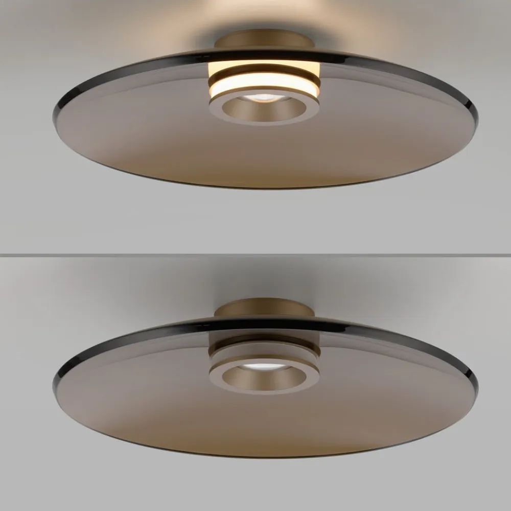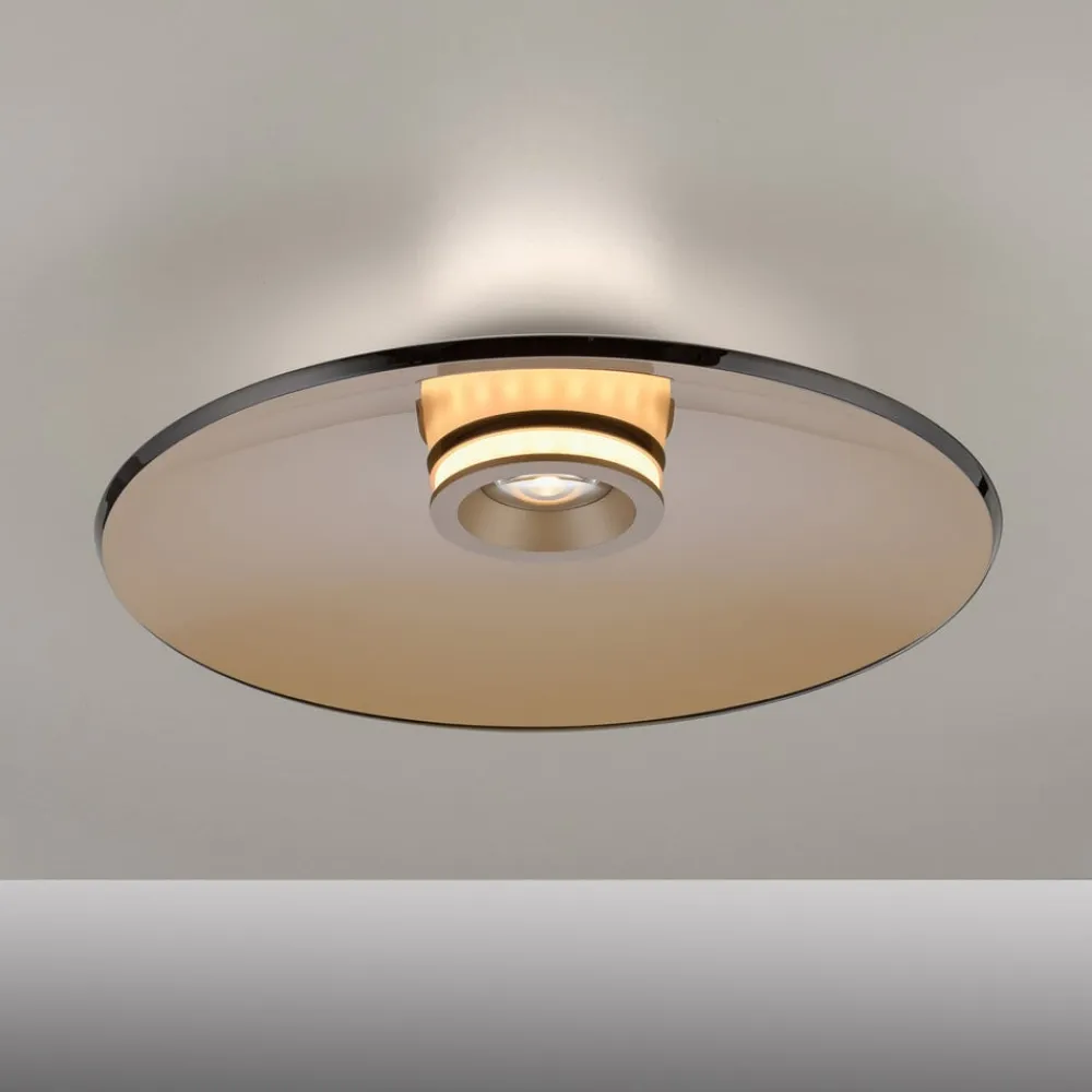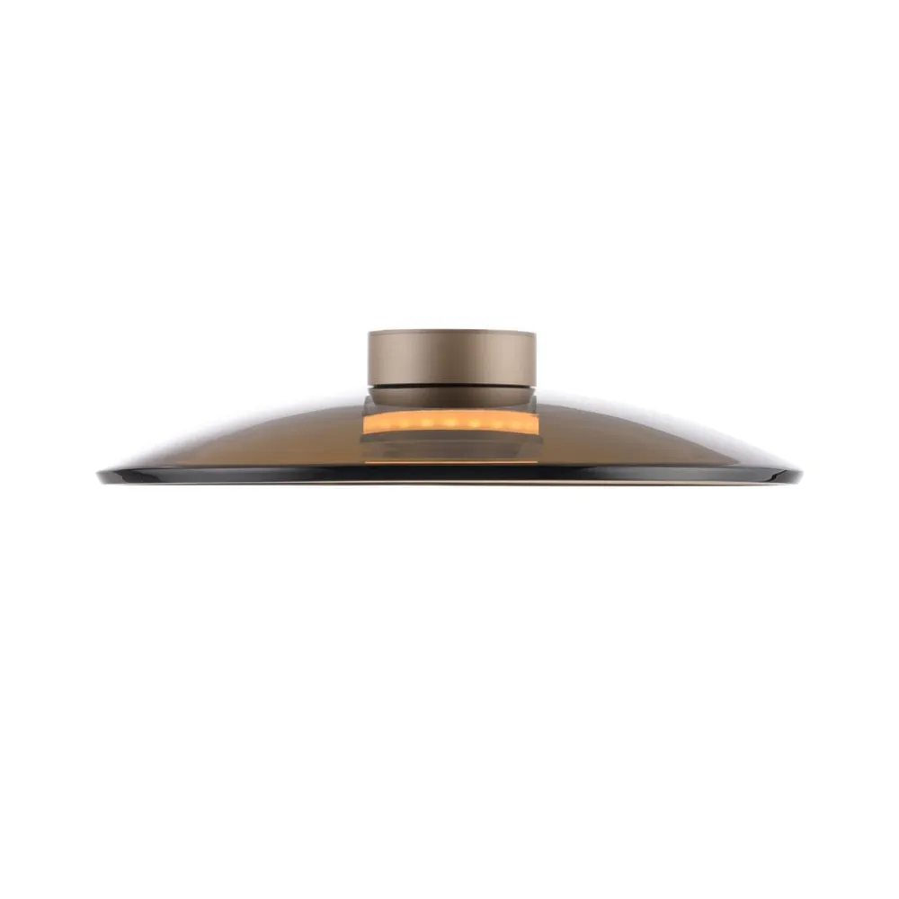 Moon LED loftlampe med buet lampeskærm i glas – eksternt dæmpbar Moon LED loftlampen er en elegant designet lyskilde, der harmonerer med mange moderne indretningskoncepter. Dens karakter er kendetegnet ved en lampeskærm af glas i en rund, flad og opadbøjet form. Aluminiumskroppen er placeret i midten af skærmen. Den rummer et nedadrettet og et sidelysende LED-modul. Hvis det er nødvendigt, kan lysstyrken styres eksternt ved hjælp af en dæmper.