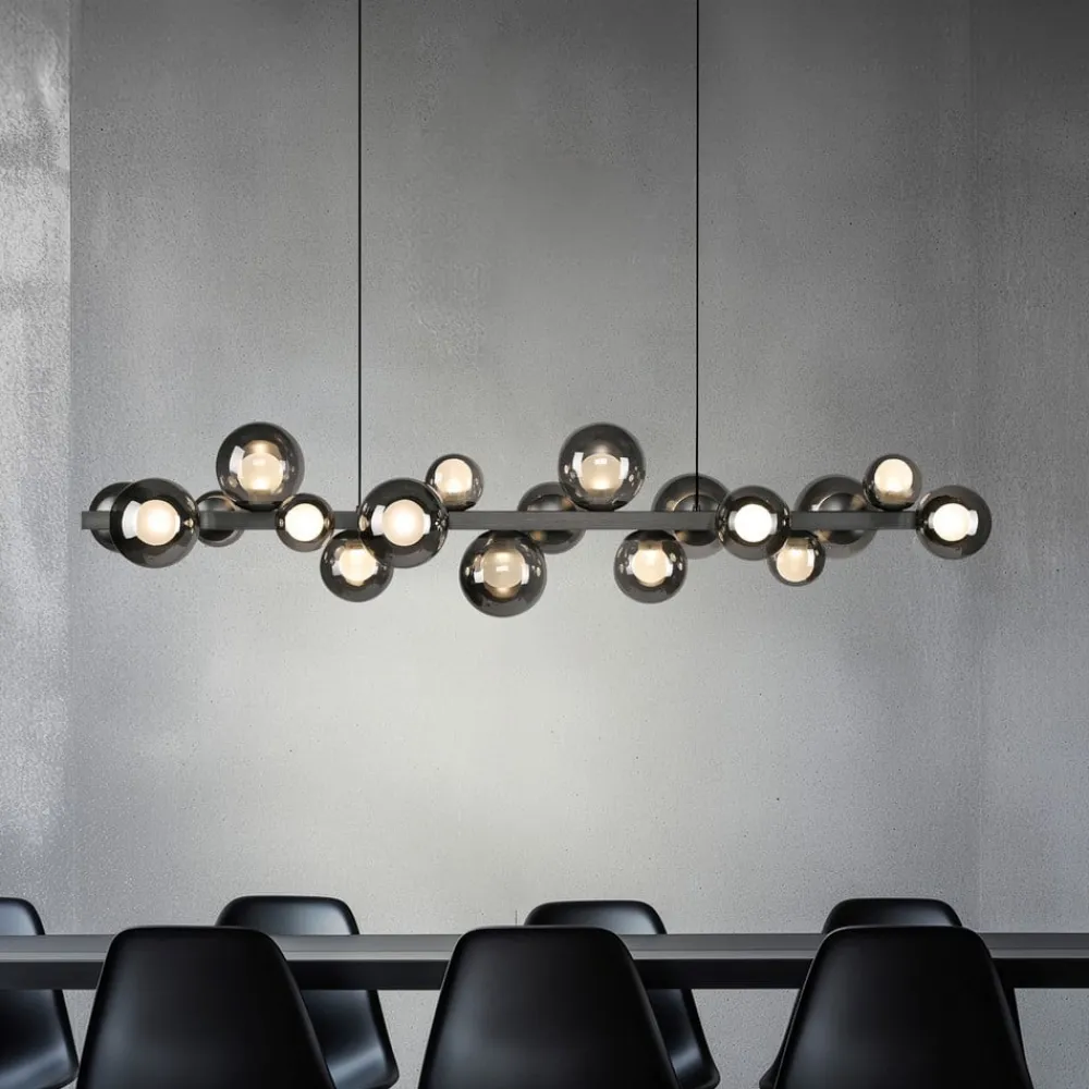 LED-pendellampe PURE E-Popup med 18 lampeskærme af glas – CCT-funktion, elektrisk højdejusterbar