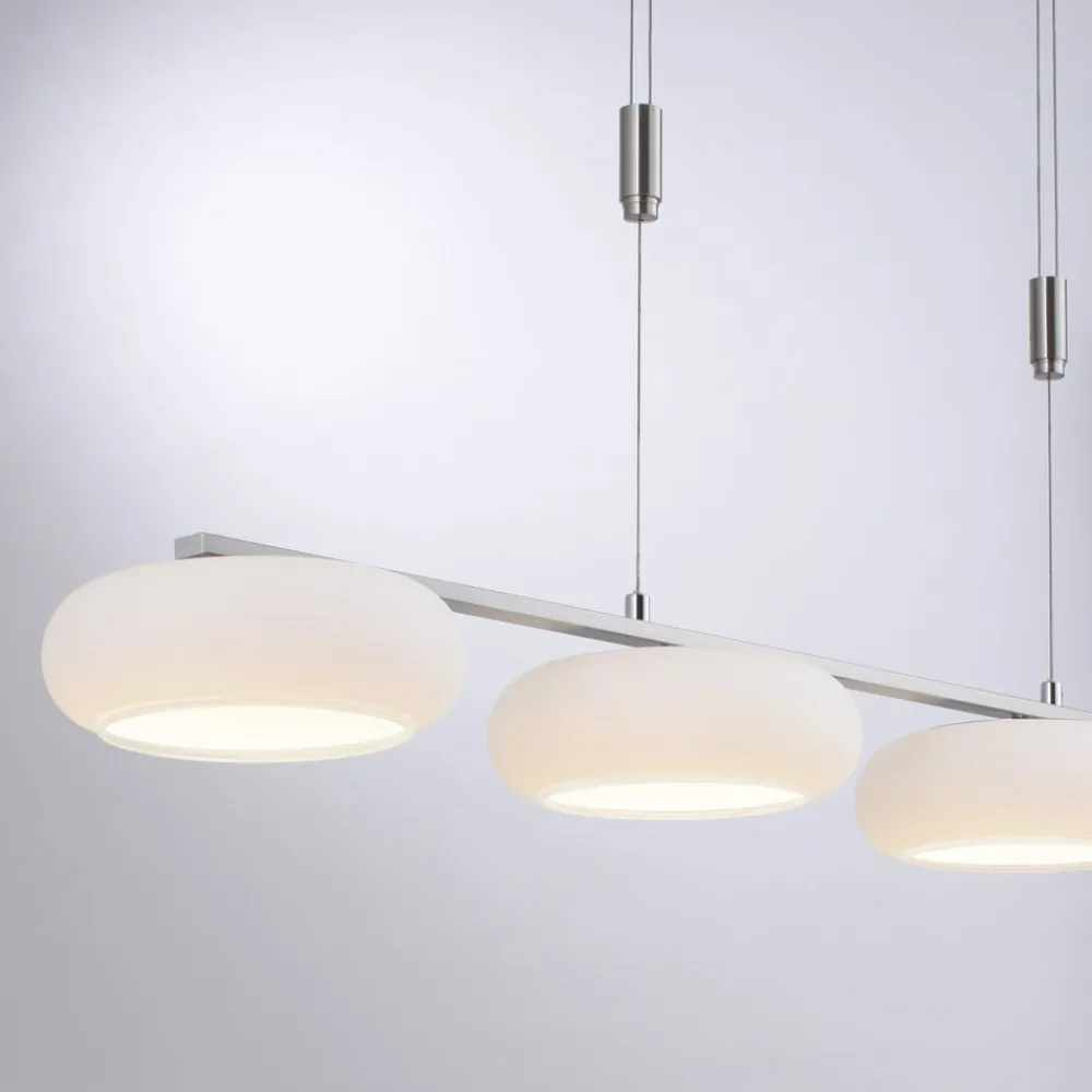 ZigBee-kompatibel Q-Etienne LED-pendellampe med højdejusteringMed Q-Etienne LED-pendellampen kan spisepladserne ikke kun belyses optimalt, men også suppleres stilfuldt. Dette opnås ved kombinationen af den sølvfarvede baldakin og de fire lampeskærme af opalglas, der er fastgjort til den. Med den medfølgende fjernbetjening kan de indbyggede CCT LED-moduler dæmpes, ændres i lystemperatur eller også skiftes til forskellige scener, så det perfekte lysøjeblik til enhver tid kan skabes. Takket være den integrerede ZigBee-standard er der også mulighed for en tilslutning til et eksisterende smart home-system, så der ud over stemmestyring også er mulighed for styring via smartphone eller tablet. Desuden kan lysbjælkens højde manuelt varieres fra 120 – 200 cm. Tekniske data/kompatibilitet:- dæmpbar- højdejusterbar fra 120 – 200 cm- justerbar farvetemperatur fra varm hvid til universal hvid- hukommelsesfunktion- styring med medfølgende fjernbetjening- ZigBee-kompatibel- stemmestyring med Echo Plus og Echo Show (2. generation) direkte mulig- ved integration i et ZigBee-baseret smart home-system også praktisk styrbar via app eller stemmestyringBemærk: Til integration i et smart home-system kræves en bro, denne er ikke en del af leveringsomfanget.