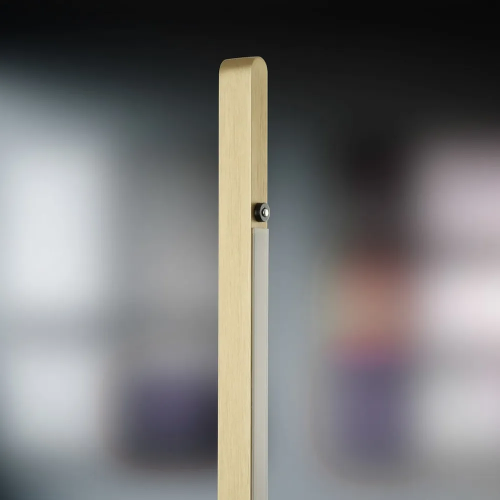 Talon LED-gulvlampe: elegance møder CCT-funktion Talon LED-gulvlampen i anodiseret mat messing er en stilfuld tilføjelse til ethvert arbejdsværelse eller stue. Med den kontrollerbare lysfarve (CCT) kan lysfarven justeres individuelt for at skabe en inspirerende eller beroligende atmosfære efter behov. Den moderne gulvlampe har en integreret LED-lyskilde, som ikke kun giver en ensartet belysning, men også er energieffektiv. Dæmpningsfunktionen giver yderligere fleksibilitet til at justere lysstyrken efter behov og skabe den perfekte atmosfære.