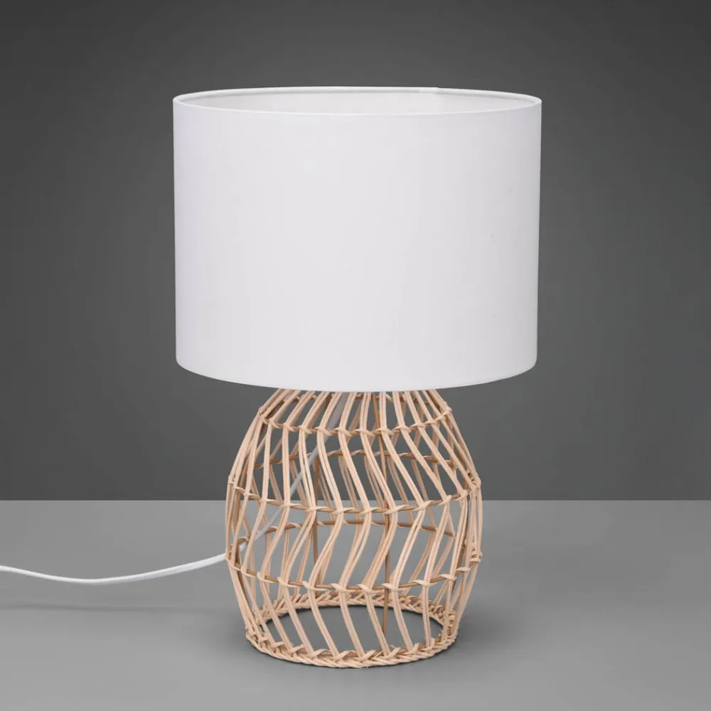 Rike bordlampe, rattanstel og stofskærm
