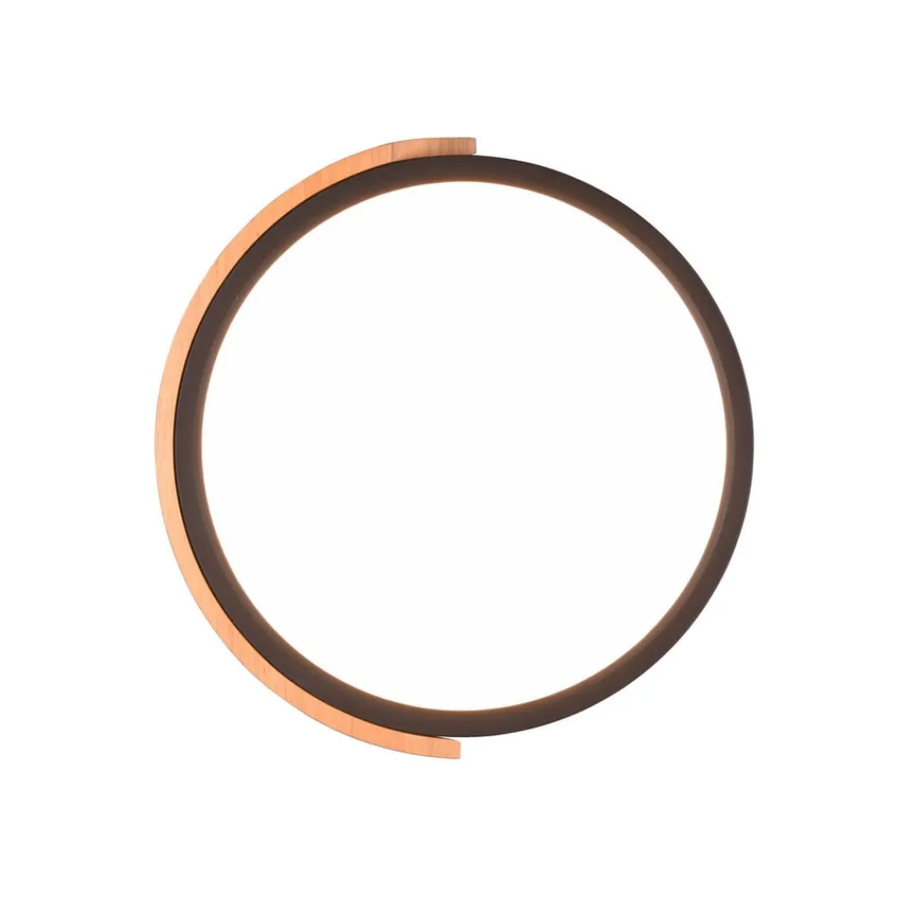 Rund LED-loftlampe Jano med trædetalje – dæmpbar i tre trin via vægkontakten