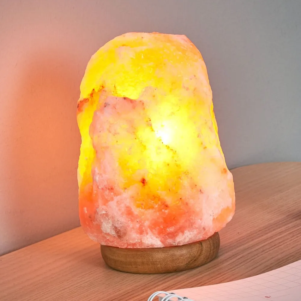 Stemningsfuld klippesaltlampe med beroligende lys Denne naturlige krystalsaltsten er unik i sin form og størrelse, fordi den er et håndlavet naturprodukt. Som dekorativt objekt finder den en passende plads overalt og skaber en beroligende atmosfære med sin varme orangefarvede tone. Lampens base er lavet af træ, hvilket understreger dens naturlighed. Rock saltlampen fås i forskellige produktvarianter. Det betyder, at der er den rette stemningsfulde belysning til ethvert rum og ethvert behov.