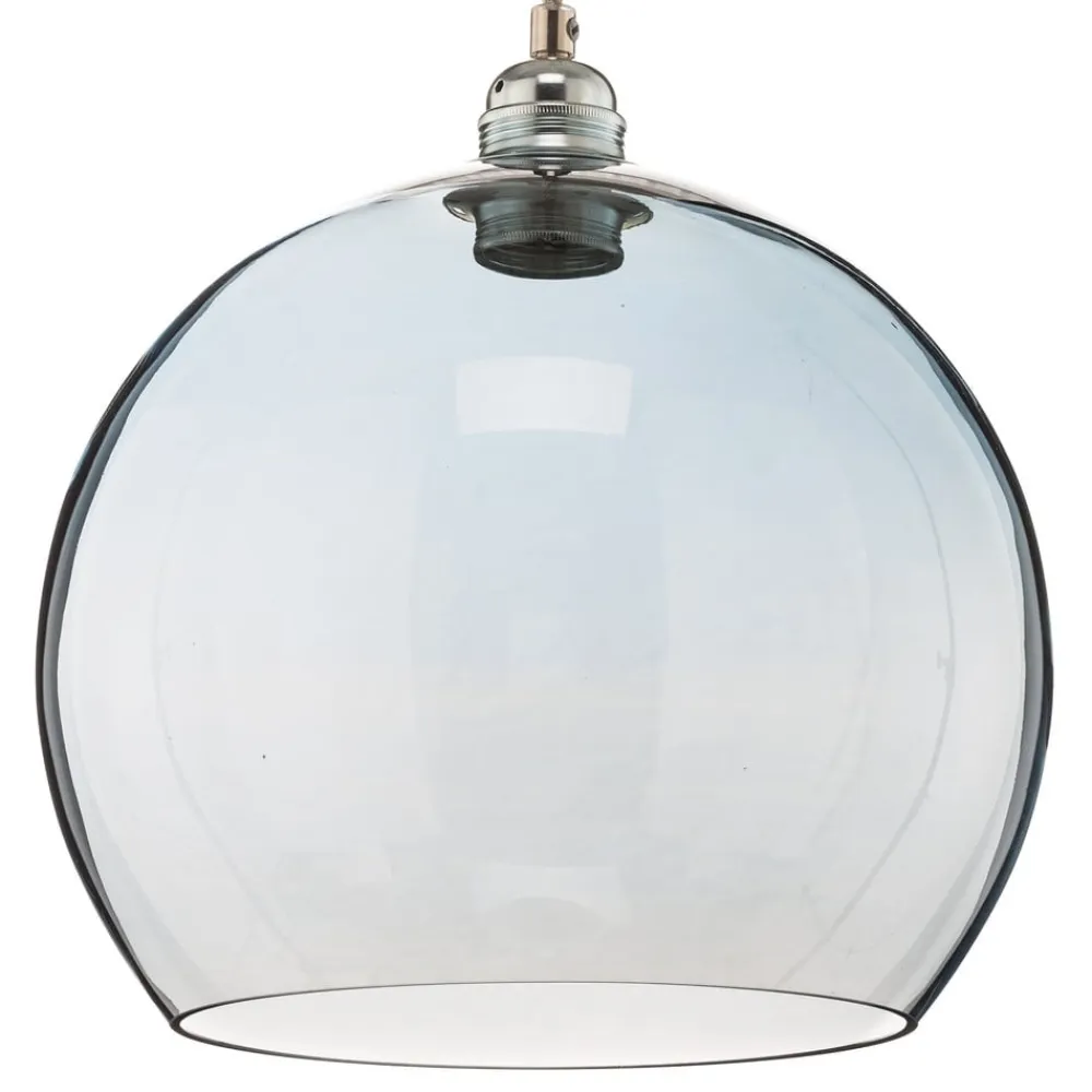 Rowan-lampens design er enkelt, men stilfuldt: En enkelt, håndblæst glasskærm danner hjertet i denne dekorative pendel. Den bløde, pastelfarvede blå i glasset ser særligt elegant ud. Skærmen suppleres med en sølvfarvet lampeomgivelse af høj kvalitet og et matchende tekstilkabel. Denne blå-sølvfarvede sammensætning passer perfekt sammen med moderne opholdsstuer og er garanteret iøjnefaldende. Med valget af den anvendte lyskilde kan der til enhver tid tilføjes en individuel note: Da den gennemsigtige skærm beskytter det indre, er moderne eftermonterings- eller glødelamper egnede som egnede lyskilder (se tilbehør).
