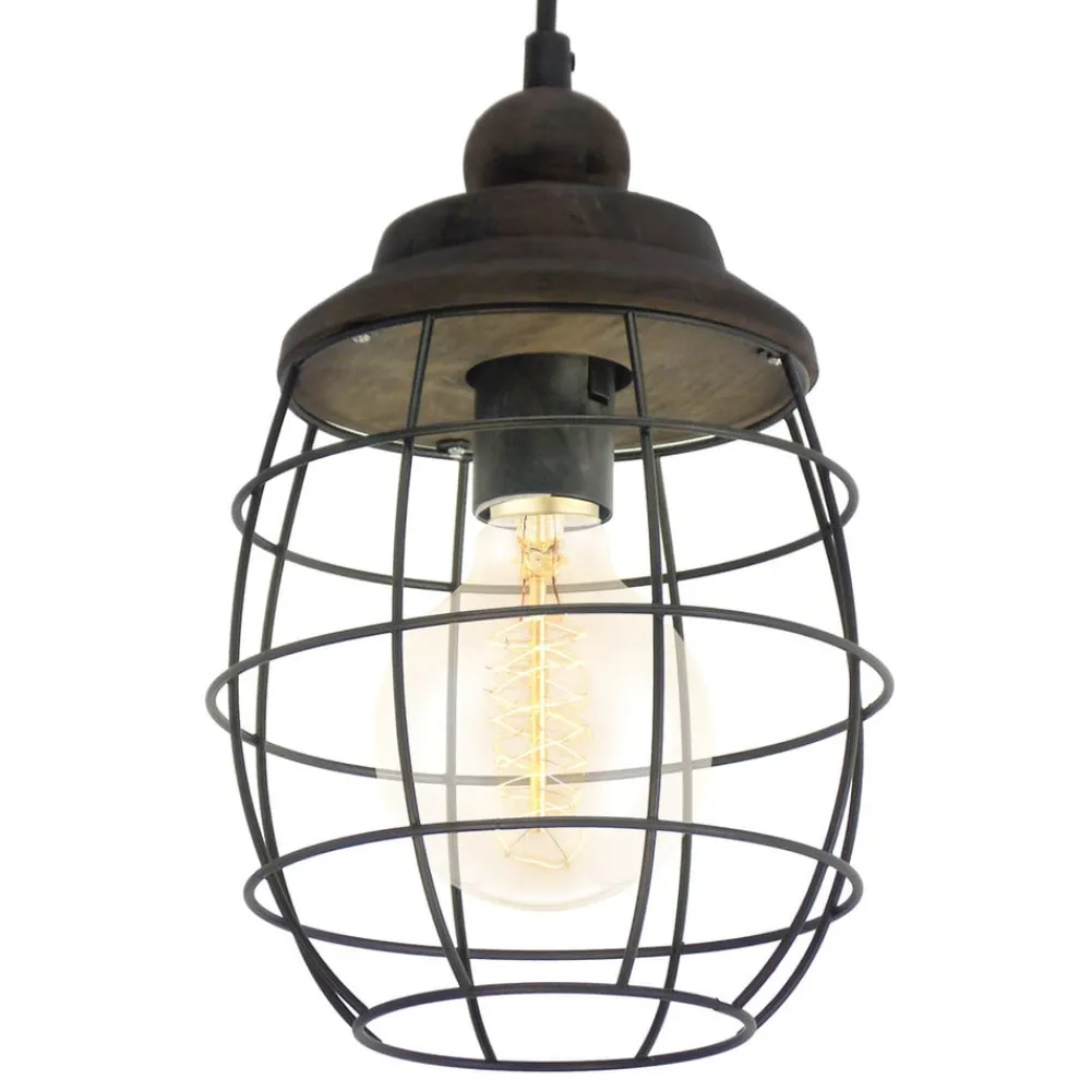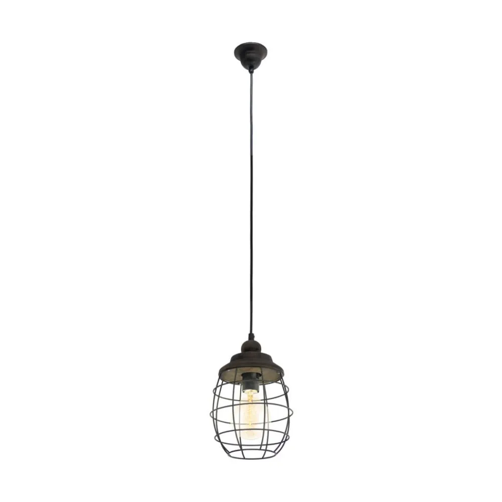 Denne hængelampe er fremstillet af råmaterialet stål og giver med kombinationen af sin rustenbrune overflade og det rustikke design en usædvanlig, men alligevel dekorativ virkning i boligen. Skærmen består her af en konstruktion af metaltråd, som giver fuldstændigt frit udsyn til pæren i dens indre. Lyset kan på den måde skinne til alle sider, hvilket skaber en dejlig atmosfære i omgivelserne. Med den rigtige Rustika pære kan lampens autentiske virkning forstærkes vidunderligt. (se tilbehør)