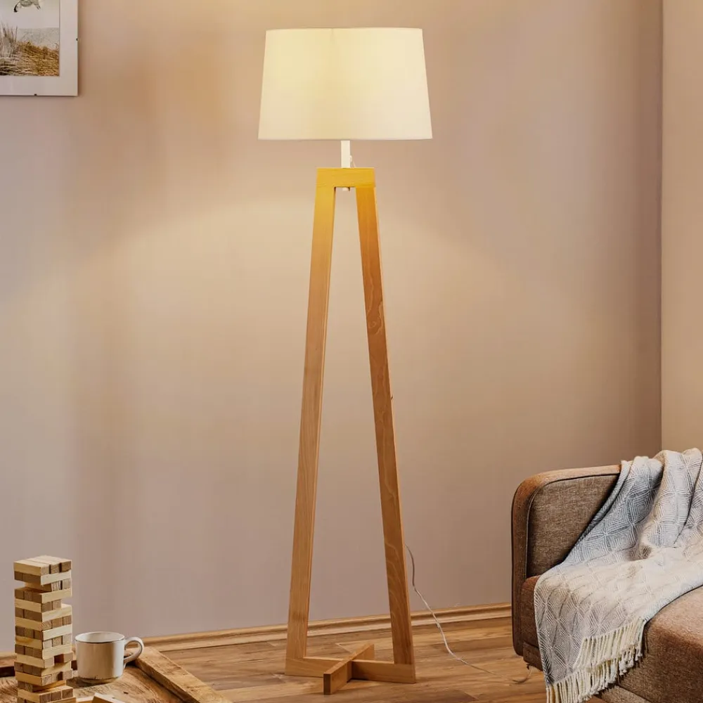 Sacha LS gulvlampe af træ og stof, hvid