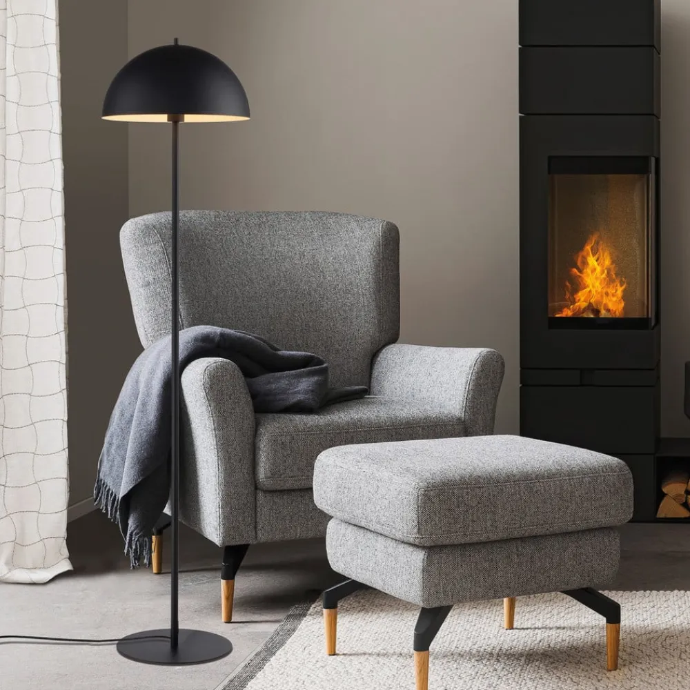 Ali gulvlampe i metal med E27-fatning og fodkontakt