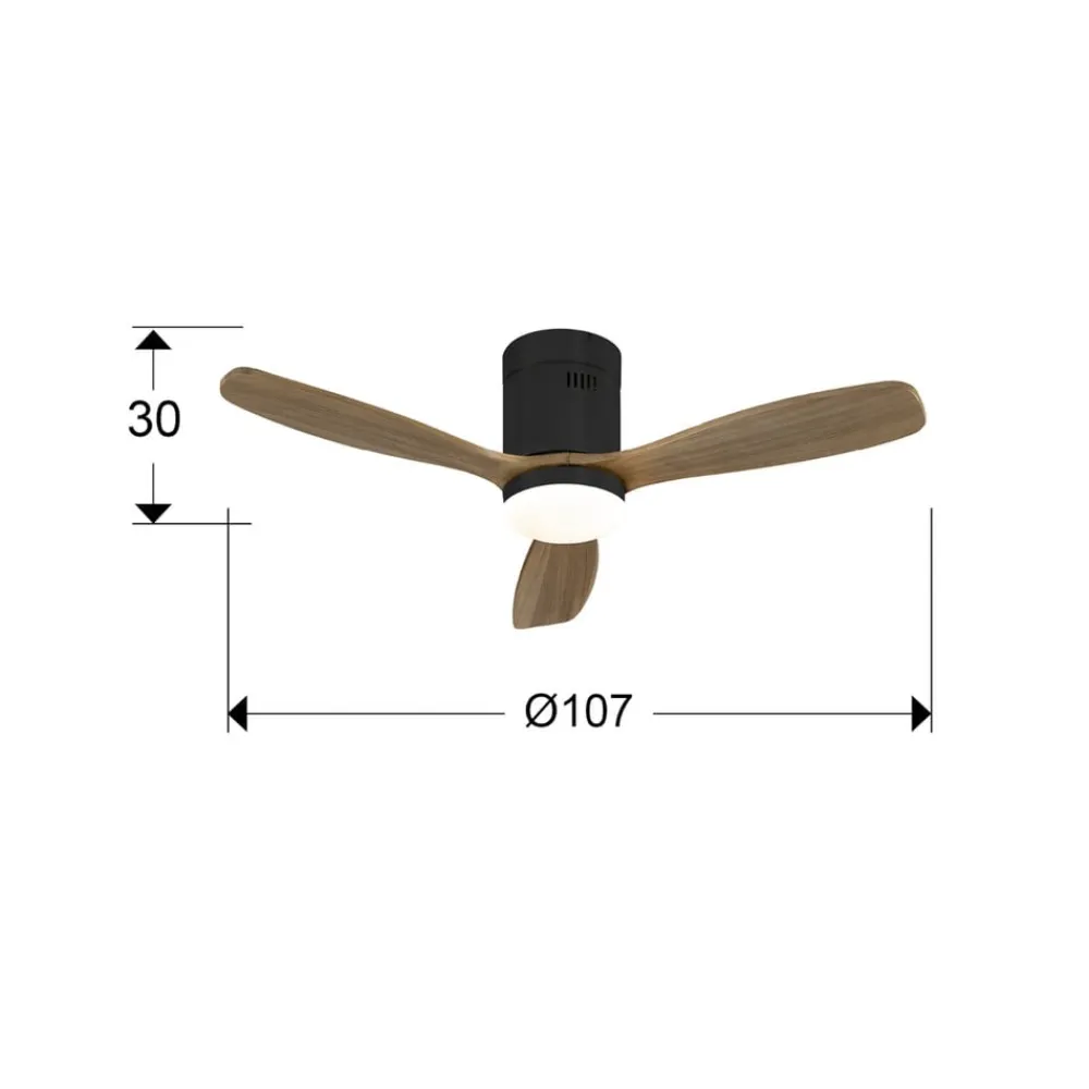 LED loftventilator Siroco Mini, DC, støjsvag, sort/valnød