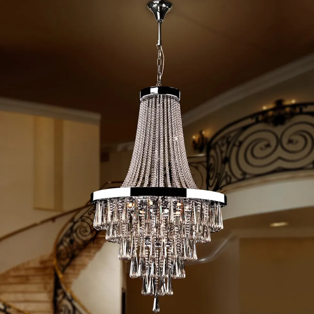 Den strålende pynt på denne lysekrone består af fine metalkæder Lysekronen får dermed en helt enestående elegance. Lysekronens elegante fremtoning komplementeres af førsteklasses K9-krystaller. Leveres inkl. sort fløjlsafdækning til kæden.