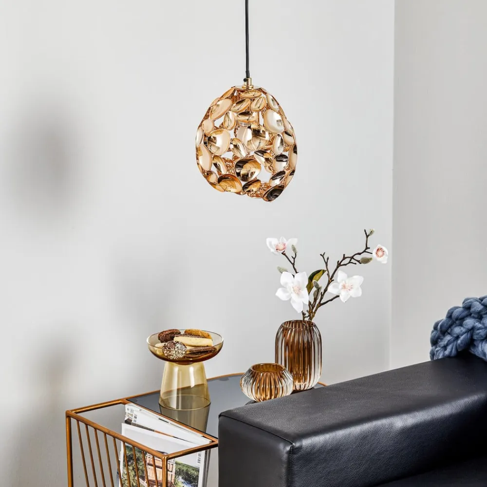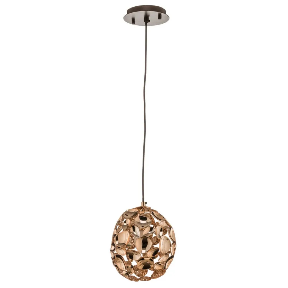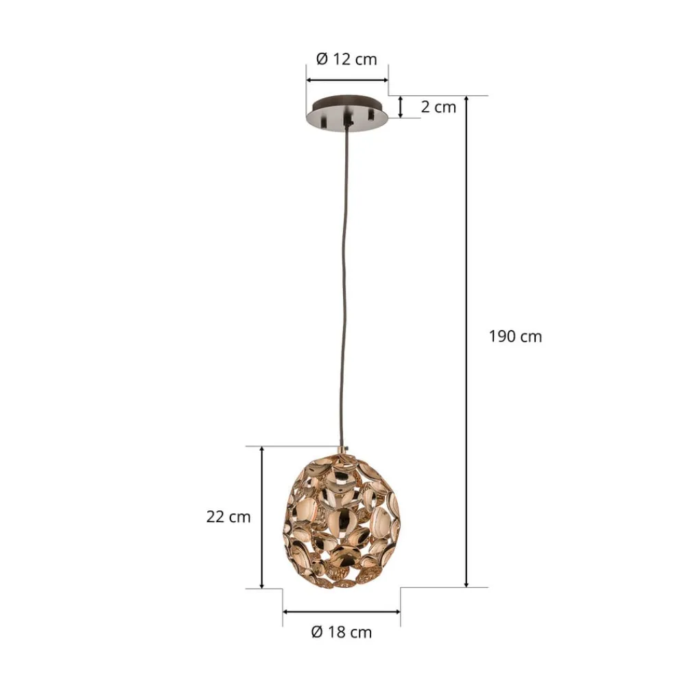Narisa LED-pendel med kugleformet skærm: rosaguld og brun LED-pendlen er et ægte blikfang, selv når den ikke er tændt, når dagslyset, der skinner gennem vinduet, reflekteres i de mange rosaguldfarvede metaldele og skaber attraktive refleksioner. Denne proces er endnu mere imponerende, når lyset er tændt takket være det varme hvide lys fra pæren. Narisa er velegnet til mange moderne boligstile og giver stemningsfuld omgivelses- eller områdebelysning – Ophængshøjden kan justeres under installationen