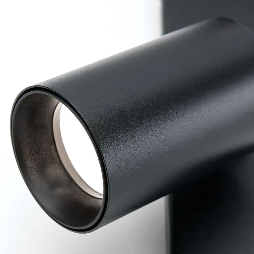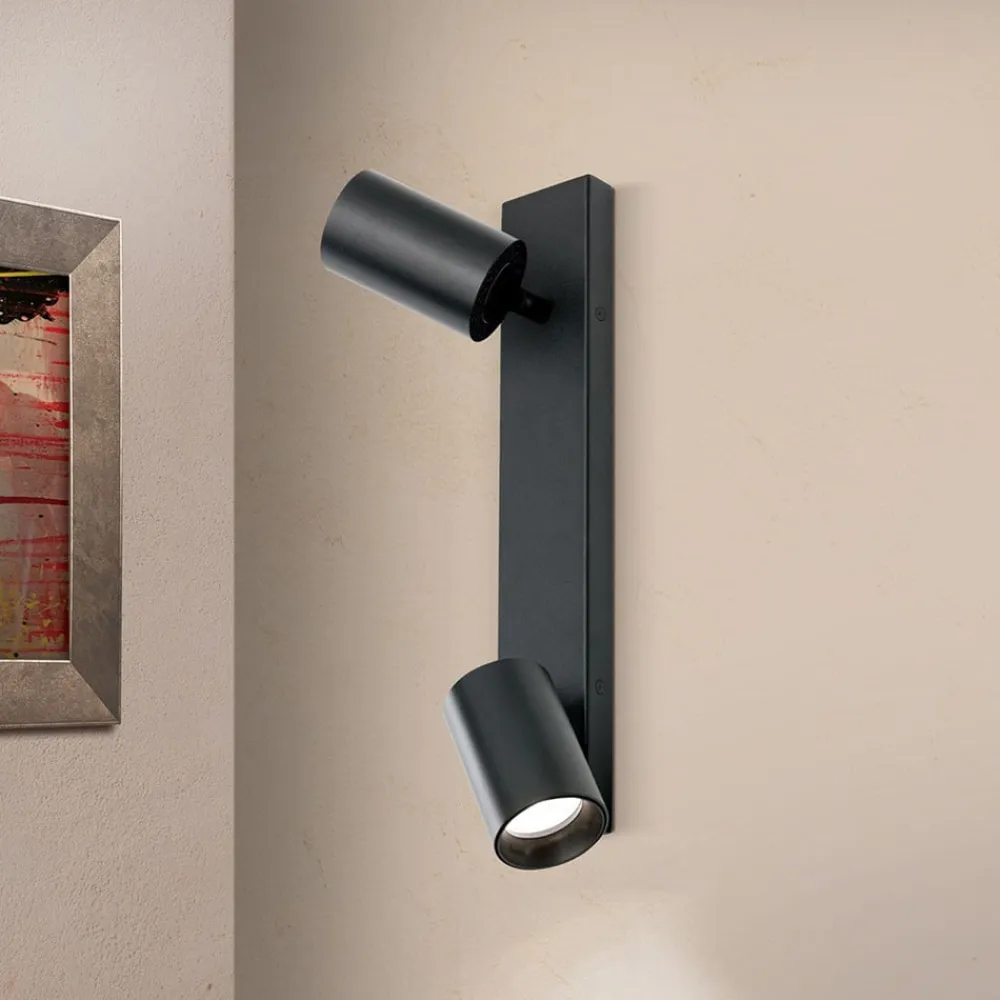 Med det subtile og moderne spotlight Sean kan områder eller genstande sættes i scene på sofistikeret vis. Da de to spots kan drejes og drejes, kan de tændes direkte og målrettet uden at forårsage blænding, fordi GU10-pærerne let forsvinder ind i armaturhuset. Spottene har en afrundet form og harmonerer med det aflange loft- eller vægarmatur, der ligesom spotlights også er designet i en mat sort farve.