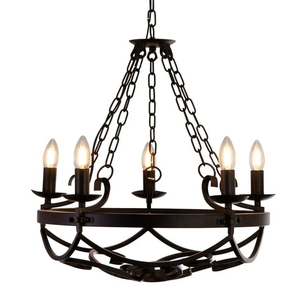 Searchlight Lysekroner>Maypole lysekrone, mat sort, 5 lyskilder