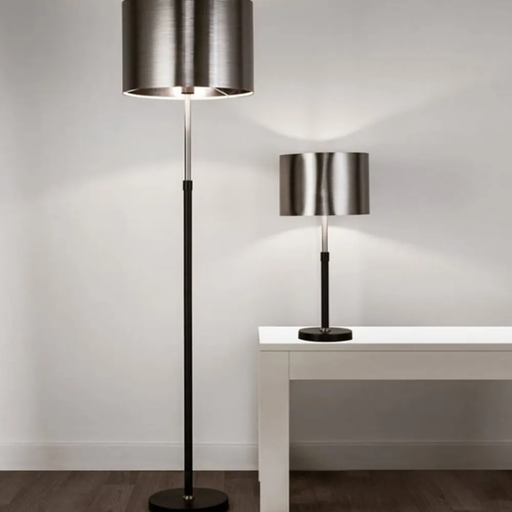 Med denne moderne, elegante standerlampe med metalskærm i børstet sort-krom kan både private og forretningsrum udstyres med et moderne belysningstilbehør, der harmonerer med de mest forskellige møbleringsmuligheder. Kolonne giver velkommen ekstra belysning og beriger også interiøret med et elegant touch.