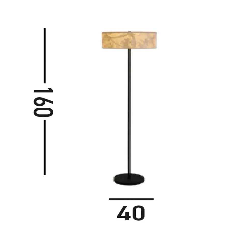 Isla gulvlampe med skærm af genbrugspapir og bambus Bring naturen ind i dit hjem med denne fantastiske Isla gulvlampe. Skærmen er lavet af miljøvenligt genbrugspapir og har et smukt bladprint i naturlige farver. Den matsorte ramme er lavet af stål og har et meget enkelt design. De tre E27-fatninger i lampeskærmen kan monteres med pærer efter eget valg (maks. 40 W).