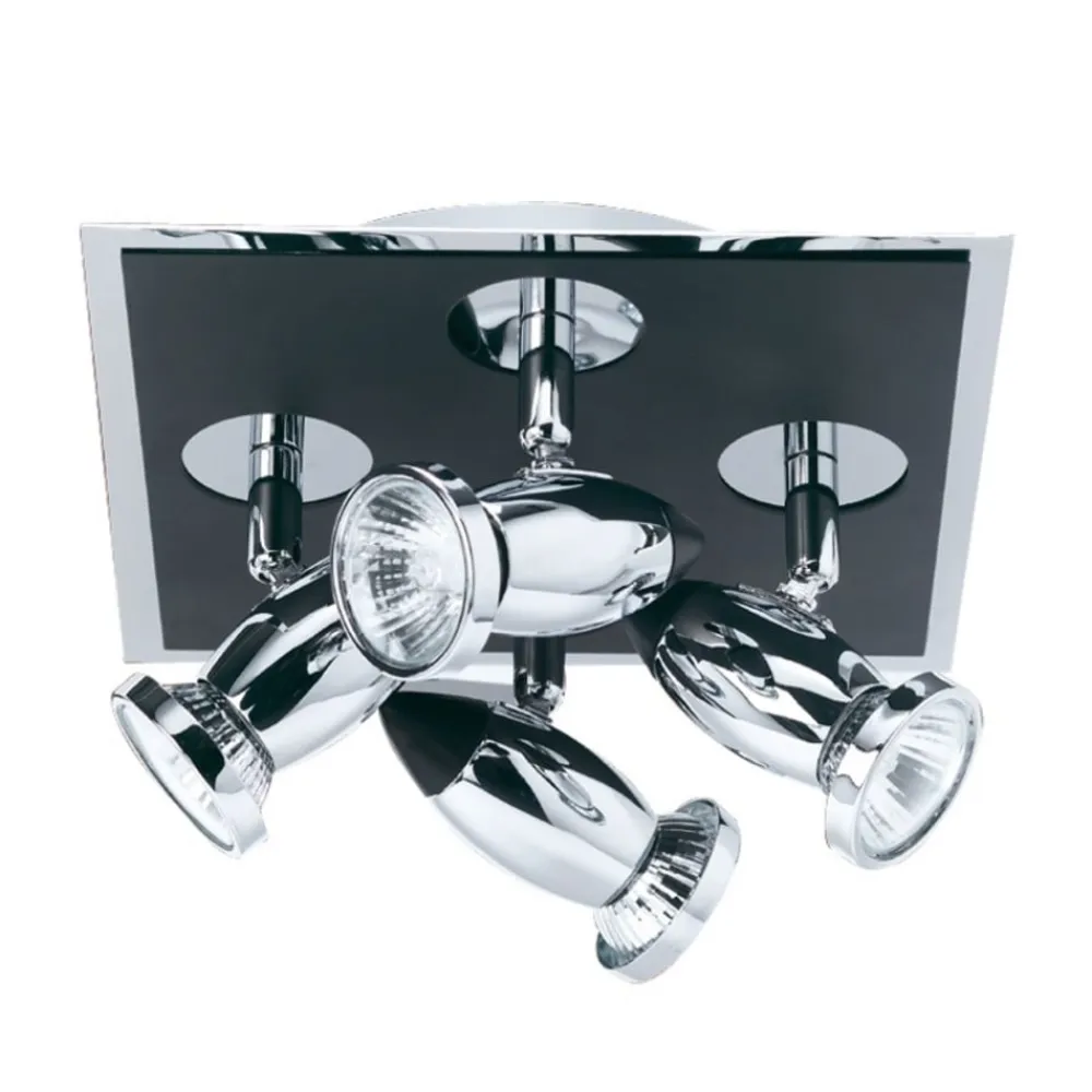 Med denne loftlampe kan man belyse store arealer i rum, for hver af projektørerne, der forsynes med halogenpærer, kan justeres efter behov, så lyset når ind i den ønskede krog i rummet. En loftlampe i topklasse og med meget moderne udstråling!
