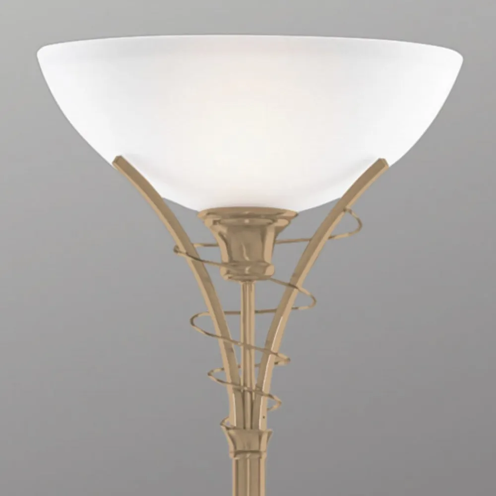 Den runde skålformede skærm af opalglas på LINEAS gulvlampen virker dejligt tidløs. Lampen holdes af en tiltalende metalfod. Lyset stråler behageligt og indirekte ud i rummet. Med sin udformning i patineret messing kan LINEA legende let integreres i interiører i forskellige stilarter. Gulvlampen egner sig til energisparepærer.