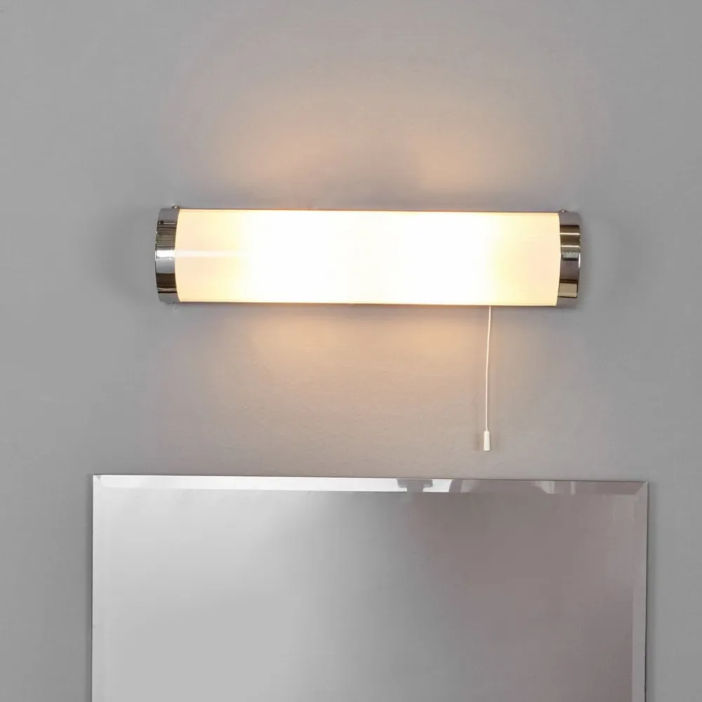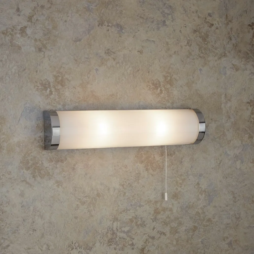 Badeværelseslampen LIANA er den ideelle spejllampe – med kapslingsgrad IP44 Liana er en klassisk badeværelseslampe, der ser godt ud monteret over et spejl og frem for alt giver et godt, blændfrit lys. Den betjenes ved hjælp af en trækkontakt. Med en IP44-beskyttelsesgrad er Liana optimalt beskyttet mod vandsprøjt og indtrængen af fremmedlegemer.