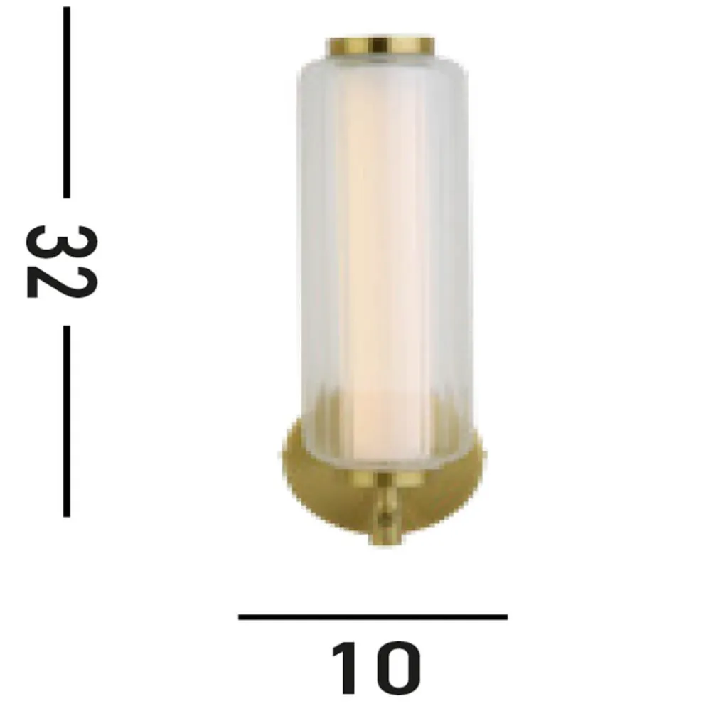 Mod LED-væglampe, dæmpbar via lyskontakt Denne Mod LED-væglampe lavet af ribbet glas og en stålramme med en satin messingfinish er mere end bare en lyskilde – det er et iøjnefaldende statement piece. Med en spændende blanding af varme og moderne linjer forvandler den ribbede skærm i klart glas lyset og giver dybde og dimension til et rum. Lyskontakten kan bruges til at skifte lysstyrke i tre trin ved at trykke på den flere gange.