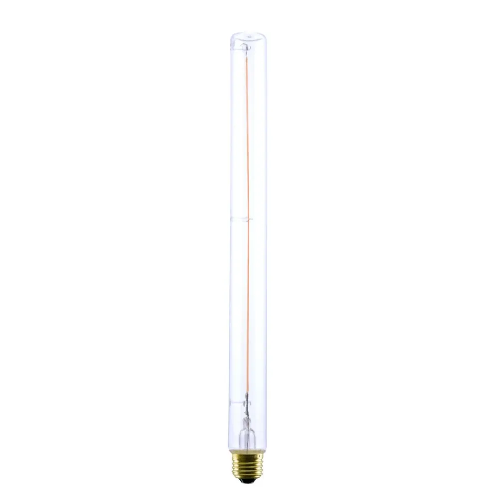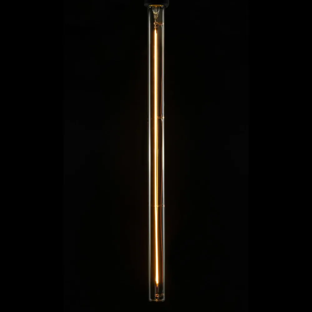 LED-pære E27 8W T30 i rørform 1.900 K, dæmpbar Denne helt nye LED-pære i Soft Line-serien fra Segula er en nyskabelse. De fleksible LED-tråde ligner til forveksling glødetråde og er ideelle til dekorativ belysning med deres ekstremt varme lys. Lampen er fuldt dæmpbar med mange standarddæmpere og er et ægte blikfang, allerede før den er tændt – ekstremt varm lysfarve 1.900 K – særlig god farvegengivelse (CRI >90) – dæmpbar med mange standarddæmpere som GIRA, ELTAKO, Jung m.fl.