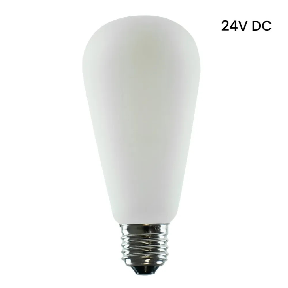 LED lampe E27 6W i rustik form, opal, dæmpning i omgivelserne, 24VA Fra Nautic Line fra Segula kommer denne smukke LED lampe i rustik form lavet af glas. Denne serie af lamper er specielt udviklet til direkte brug i 24V-nettet, så lamperne kan bruges i husbåde, campingvogne osv. uden brug af en omformer. E27-lampen med opalhvid glaspære giver en varm hvid belysning, der kan dæmpes. Takket være ambient dimming sænkes farvetemperaturen fra 2.700 K til 2.000 K ved at reducere lysstyrken – det giver et særligt stemningsfuldt dæmpet lys.