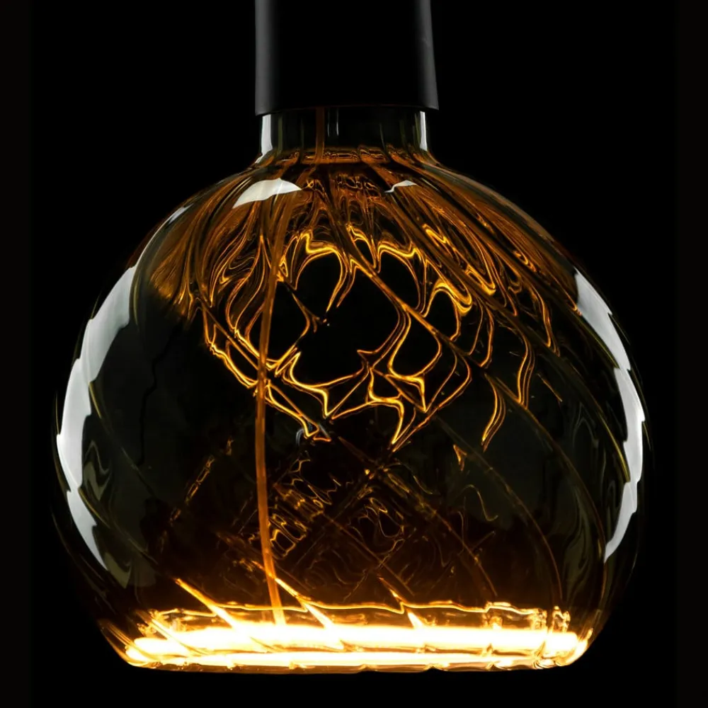 Floating Globe twisted – en dekorativ LED-globuslampe G150 E27 med 6 watt i smokey grey Floating-serien fra SEGULA er udstyret med et dobbeltvægget glas med smokey grey nuance og en patenteret LED soft filament indbygget som en ring. Det skaber et indtryk af svævende lys. Pærens glas er åbent i toppen, hvilket skaber tiltalende lyseffekter. Pæren rummer en spændende lysoplevelse i sig selv og klarer sig helt uden skærm eller andre dikkedarer. E27-glaslampen har en særlig varm hvid lysfarve i 1.900 Kelvin-området og giver dermed et hyggeligt lys. Kan dæmpes med de fleste standarddæmpere – Tildelt Plus X Award 2022/2023 i kategorierne Innovation, Høj kvalitet og Design