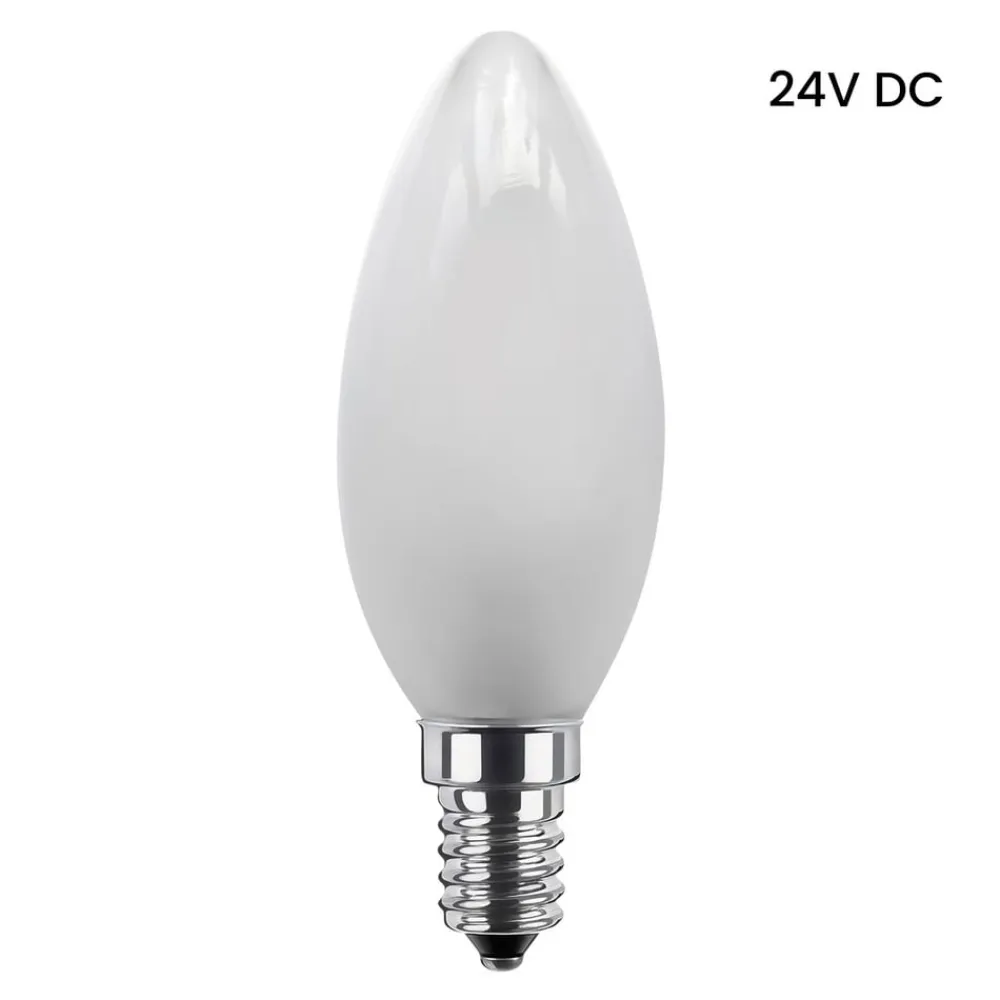 LED-kertepære E27 24V 3W 2.700K mat, dæmpbar LED-kertepæren fra Segulas Nautic Line er designet til brug i 24V-nettet, så den kan bruges direkte i autocampere, husbåde, campingvogne og andre områder med 24V-nettet uden brug af en omformer. Den udsender varmhvidt lys og er dæmpbar, hvor ambient dimming reducerer farvetemperaturen til et særligt hyggeligt niveau (2.700 K – 2.000 K). Kertepæren er ikke egnet til brug i 230V-nettet.