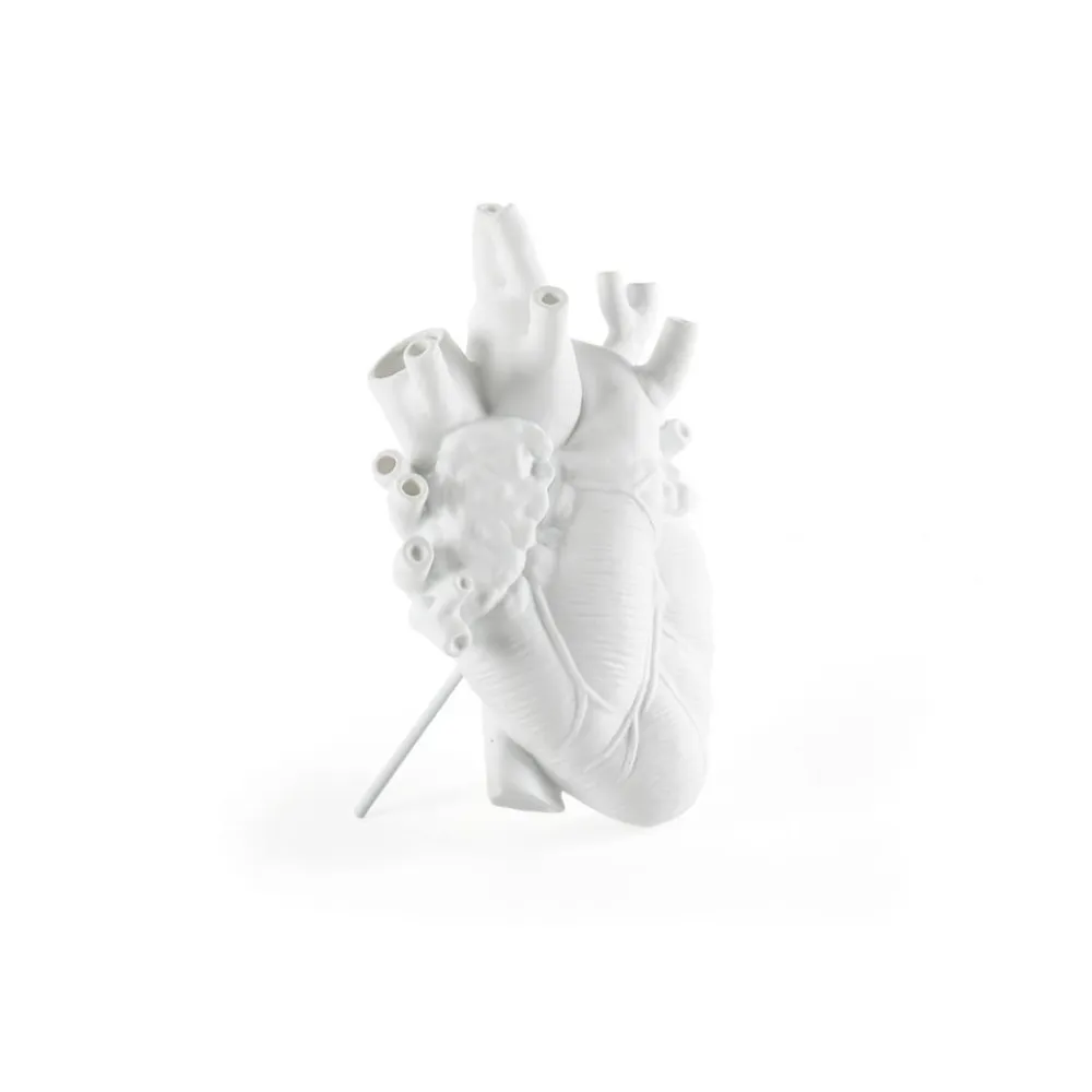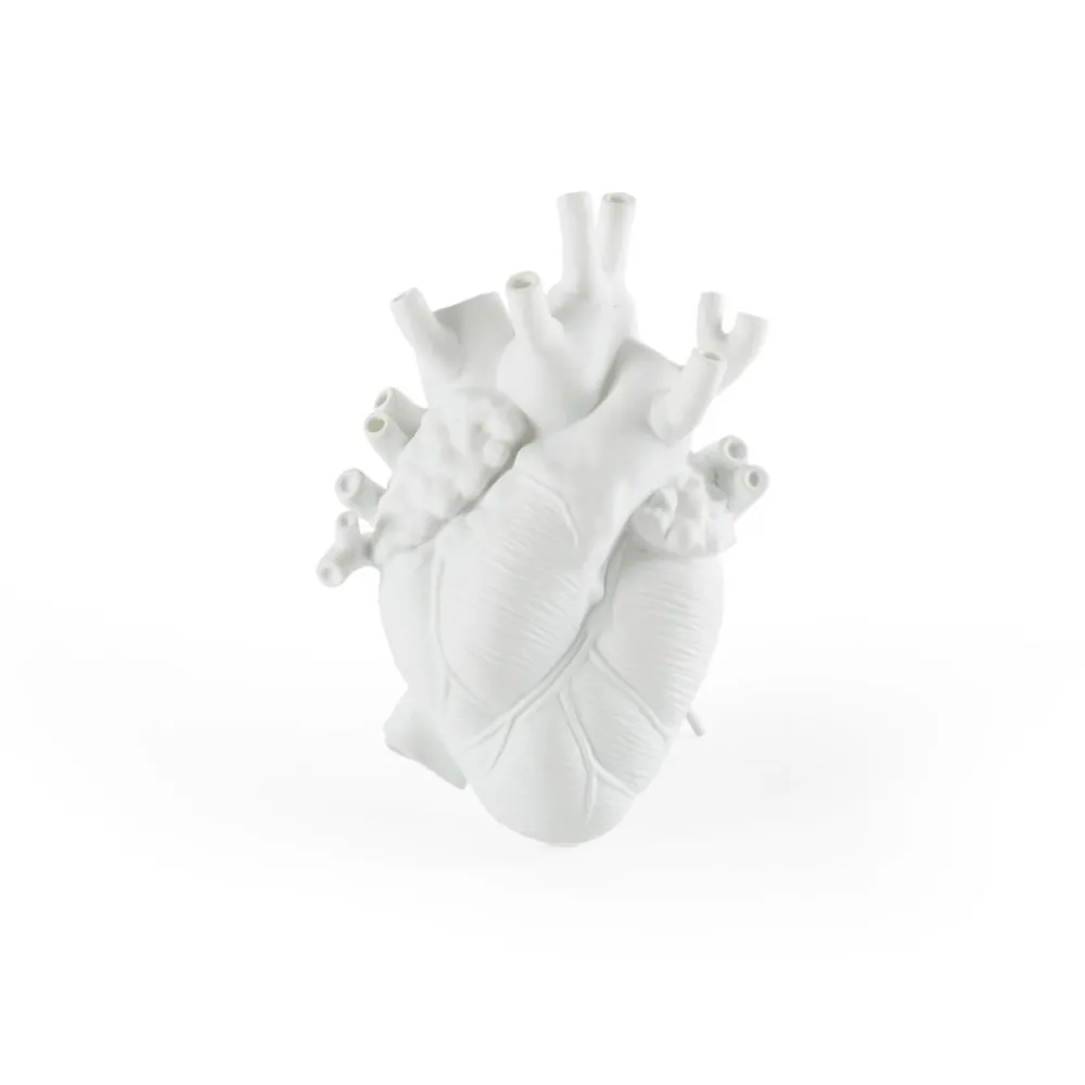 Plantekrukke og skulptur i ét: Love in Bloom-vase af højkvalitetsporcelæn fra SELETTI Love in Bloom er en hjerteformet vase, der ser ud, som om den stammer fra et essay om menneskets anatomi. En moderne kærlighed omsat til en romantisk, men uforudsigelig gave. Det er ikke en drøm, det er kærlighed i blomst. Det er ikke forår, det er kærlighed i blomst. Inklusive stativ og gaveæske.