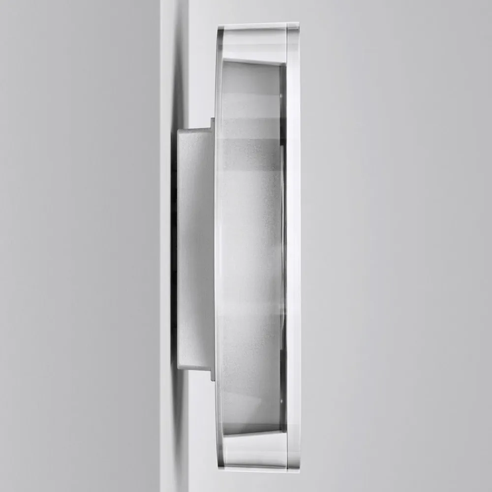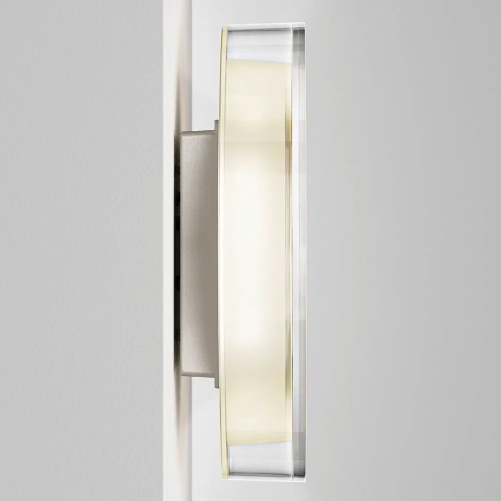 LED designer-væglampe LYD med spejlglasfront Minimalistisk form og blødt lys er de nøgleord, der bedst beskriver LED-væglampen LYD. Minimalistisk, fordi den, når den er slukket, blot er en rund skive på væggen. Selv om denne runde skive er et spejlglas og derfor også har en praktisk anvendelse, især i entreen eller soveværelset, er armaturets design grundlæggende uden stor pomp og søde gimmicks. Men når man tænder lyset, kommer LYDs sande storhed til syne. Mildt, fladt lys spredes omkring skiven på væggen og fremstår næsten som en aura af lys. Den rent laterale lysudsendelse sikrer også, at observatører eller forbipasserende ikke blændes, da lyset ikke sendes direkte ud i rummet. LYD væglampen er et designerprodukt, der er ideelt til stilfuld belysning i både private og kommercielle rum, f.eks. i hotelkorridorer, barer og restauranter. Armaturet kan også dæmmes ved hjælp af en ekstern lysdæmper (leading eller trailing edge phase control).