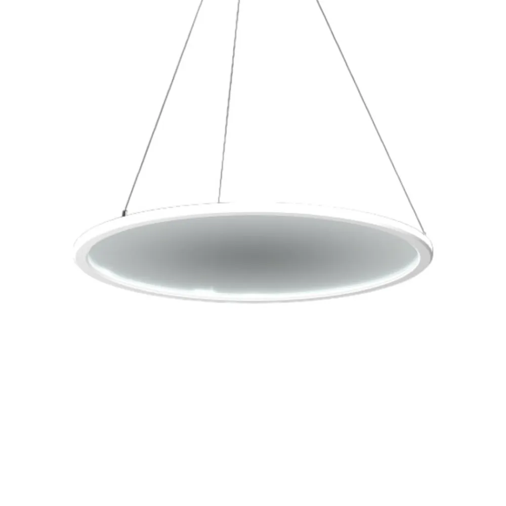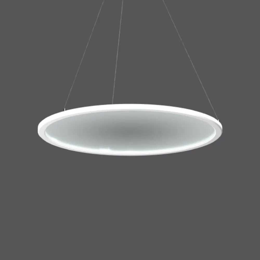 Rund LED-hængelampe Sidelite ECO med en ramme af hvid pulverlakeret aluminium og en diffusor af PMMA er takket være UGR <19 perfekt egnet til kontorområder og skærmarbejdspladser. Gennem den laterale lysindkobling fordeles lyset mere end gennemsnitligt homogent. Lyset udstråles 50 % direkte og 50 % indirekte. Diffusorer og lyslederen er fremstillet af gulningsfri plast (PMMA). Ophængningen med 3-punkts stålwirer får lampen til at virke næsten svævende og muliggør individuel ophæng ved montering. Driftsenheden er indbygget i baldakin.