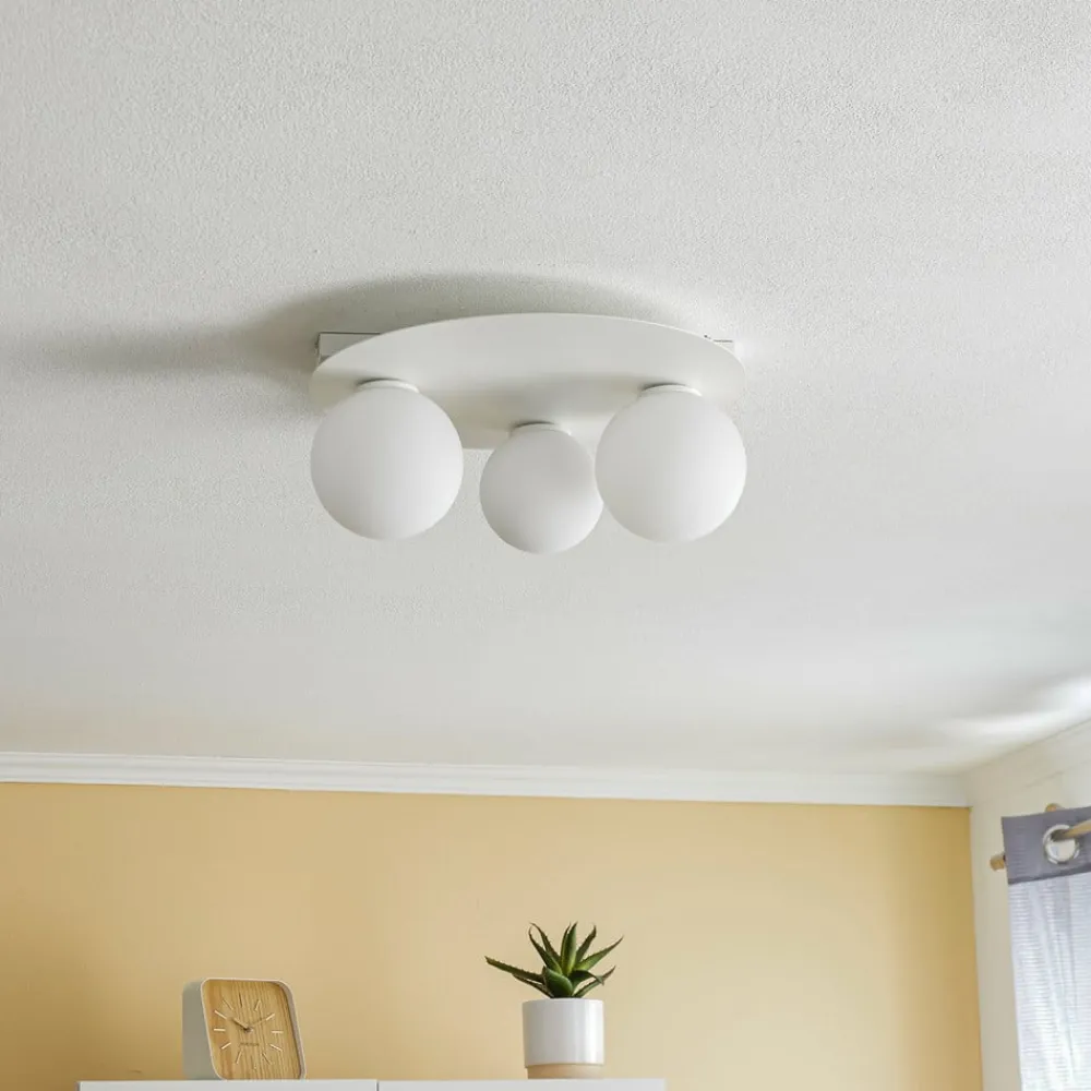 Loftlampen Firn, rund og med 3 lyskilder, forener moderne design med høj kvalitet. Fremstillet af robust stål og elegant glas passer den perfekt ind i forskellige boligområder som stuen, køkkenet, entreen og spisestuen. Den hvide, opale farve sikrer en jævn lysfordeling og skaber en behagelig atmosfære.