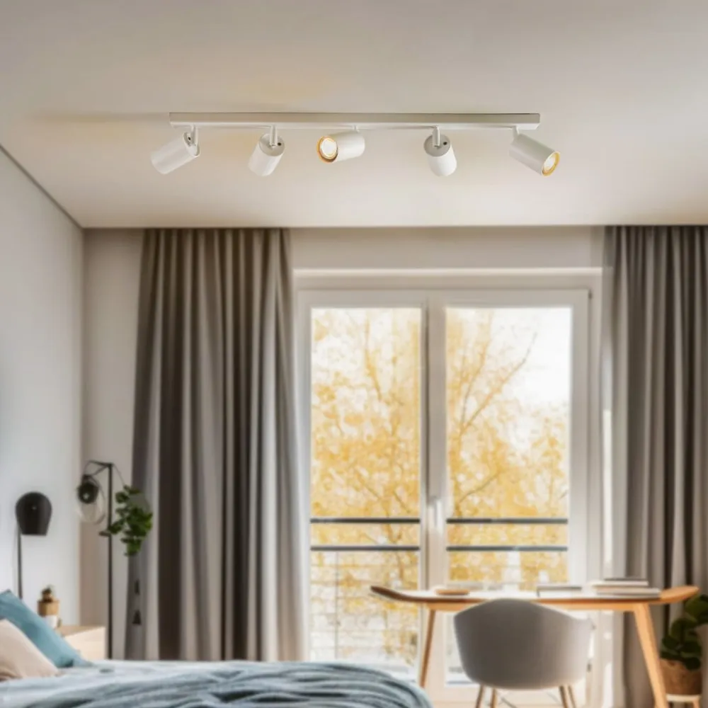 Loftspot Zoom, 5 lyskilder, i elegant hvid, forener moderne design med funktionel alsidighed. Fremstillet af højkvalitetsstål passer denne spotlight perfekt ind i forskellige boligområder som stue, entre, køkken og spisestue. De klare linjer og den diskrete farve gør den til et tidløst element, der integreres harmonisk i moderne indretningsstilarter.