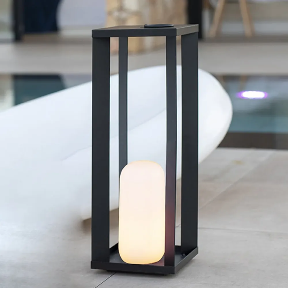 Med sit tidløse design i sort og hvid gør LED-terrasselampen en god figur i næsten alle omgivelser og fremhæver terrassen, altanen eller endda stuen med sit lanterne-look. Det lysformede lys indeni har et genopladeligt batteri, der kan oplades. Siroco har derfor ikke brug for en ekstra strømforsyning og kan placeres fleksibelt. Den integrerede flammeeffekt skaber en hyggelig lysstemning. Lampen kan tændes og slukkes og dæmpes med fjernbetjeningen (medfølger).