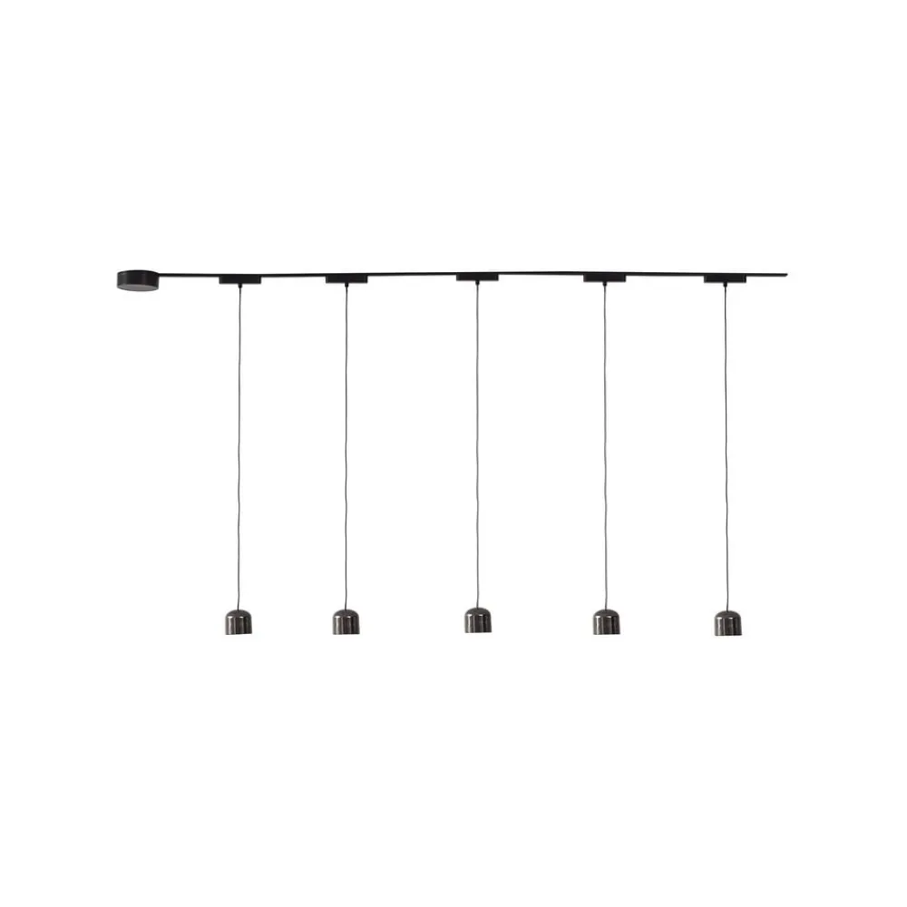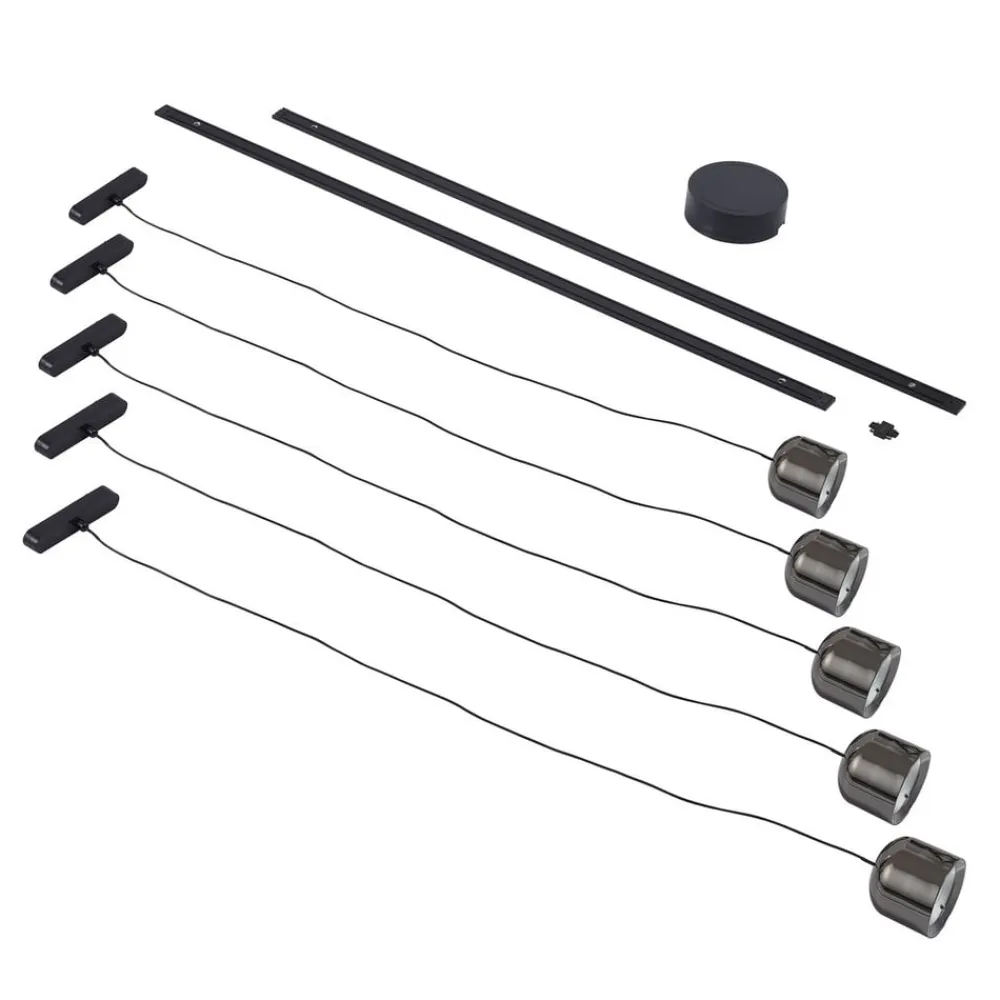 Skinnesystemet Lumaro er fremstillet af jern, aluminium og plast og fås i sort. De fem pendellamper er dæmpbare og har en regulerbar lysfarve (CCT). Begge funktioner styres med en fjernbetjening, der giver mulighed for fleksibel indstilling af lysstyrke og lysfarve (varmhvid – dagslys), så du altid kan vælge det rigtige lys til enhver situation.