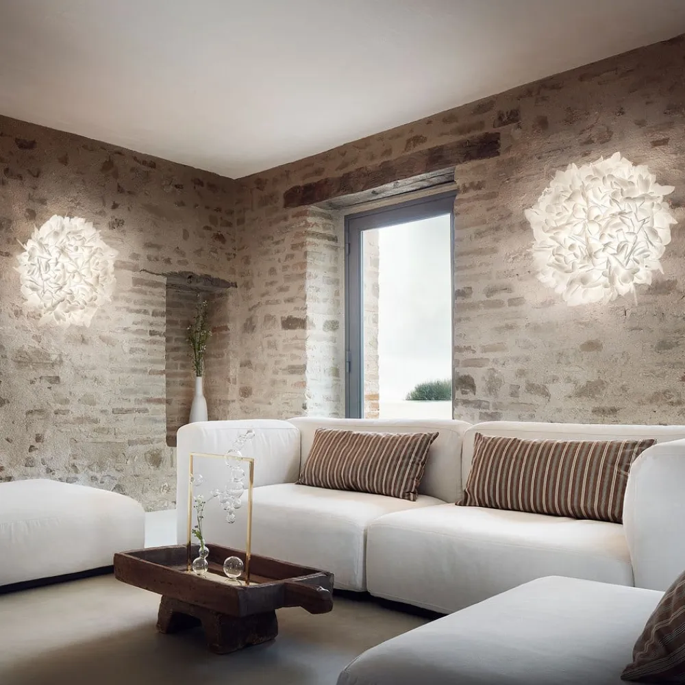 Bæredygtig og eksklusiv Veli-væglampe i hvid løvfinish Denne imponerende og yderst dekorative designervæglampe fra Veli-serien efterlader et varigt indtryk. Dens organiske form udstråler en følelse af livlighed og giver beskueren mulighed for at genopdage lyset hver dag. Veli består af over 200 plug-in-forbindelser og er resultatet af ægte håndværk. De enkelte elementer er støbt i hånden og kombineret til en tredimensionel krop. De er fremstillet udelukkende af den patenterede plast Opalflex®, som er udviklet af den italienske producent Slamp selv. Plasten består af technopolymerer og glaskrystaller, som er ekstremt fleksible og fuldstændig ubrydelige. Materialet giver Veli en tiltalende, fin kontur, som resulterer i en ensartet lysspredning. De spændende lyseffekter, der opstår omkring væglampen, fungerer enten som blød, generel rumbelysning eller giver ledsagende lys til en dekorativ accent. Takket være det praktiske magnetsystem kan skærmen nemt tages af og rengøres. Den Rom-baserede producent Slamp blev grundlagt i 1992 af Roberto Ziliani. Et af virksomhedens store og mangeårige projekter handler om bæredygtighed. Ved at fremstille lamperne af technopolymerer firdobles miljøomkostningerne. Slamp bruger ikke skruer eller klæbemidler, og alle rester genbruges eller doneres fra 2020 til virksomheder, der bruger det overskydende materiale til at lave redekasser til humlebier.