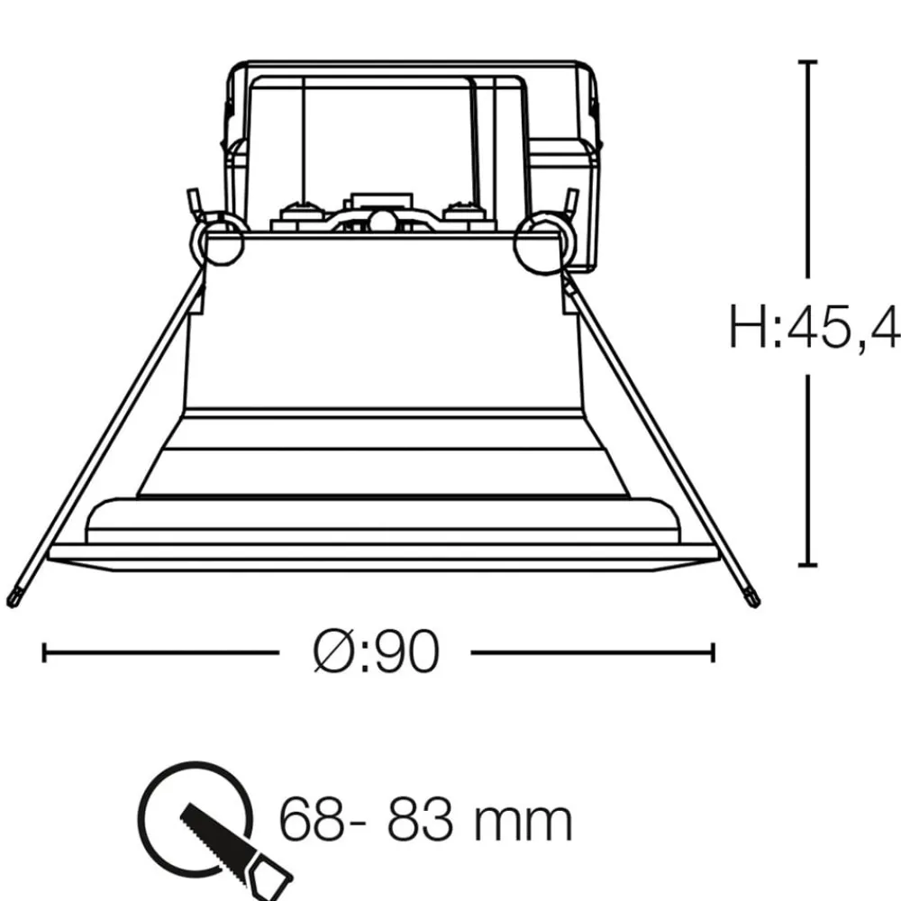 – Kan monteres i loftsåbninger med Ø 6,8 til 8,3 cm – Fremragende farvegengivelse (CRI 98) – Udstrålingsvinkel 36° – Kan drejes 360° til 30° – Kapslingsklasse: IP44 – Omgivelsestemperatur under drift: – 10 °C til + 45 °C – Inklusive forkobling (dæmpbar 1% til 100% via faseafbrydelse)