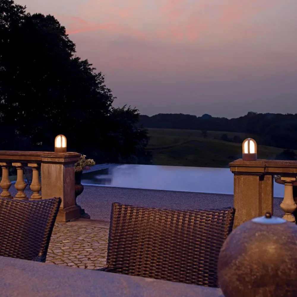 Innovativ Rusty Cone-fodlampe Rusty Cone-fodlampen har et maritimt design. Rustfarven eller rustbelægningen på Rusty Cone-fodlampen er fælles for hele Rusty-serien. Da hver lampe i dette design er unik (på grund af den naturlige rustproces og den forskellige overfladestruktur, der skabes af denne proces), kan der være små forskelle i udseende og tekstur. Som en stilfuldt designet og praktisk såvel som dekorativ lampe placeret på en søjle eller afsats skaber Rusty Cone-sokkelampen en masse atmosfære i haven og indkørslen og bringer en helt ny flair til det udendørs område, den beriger.
