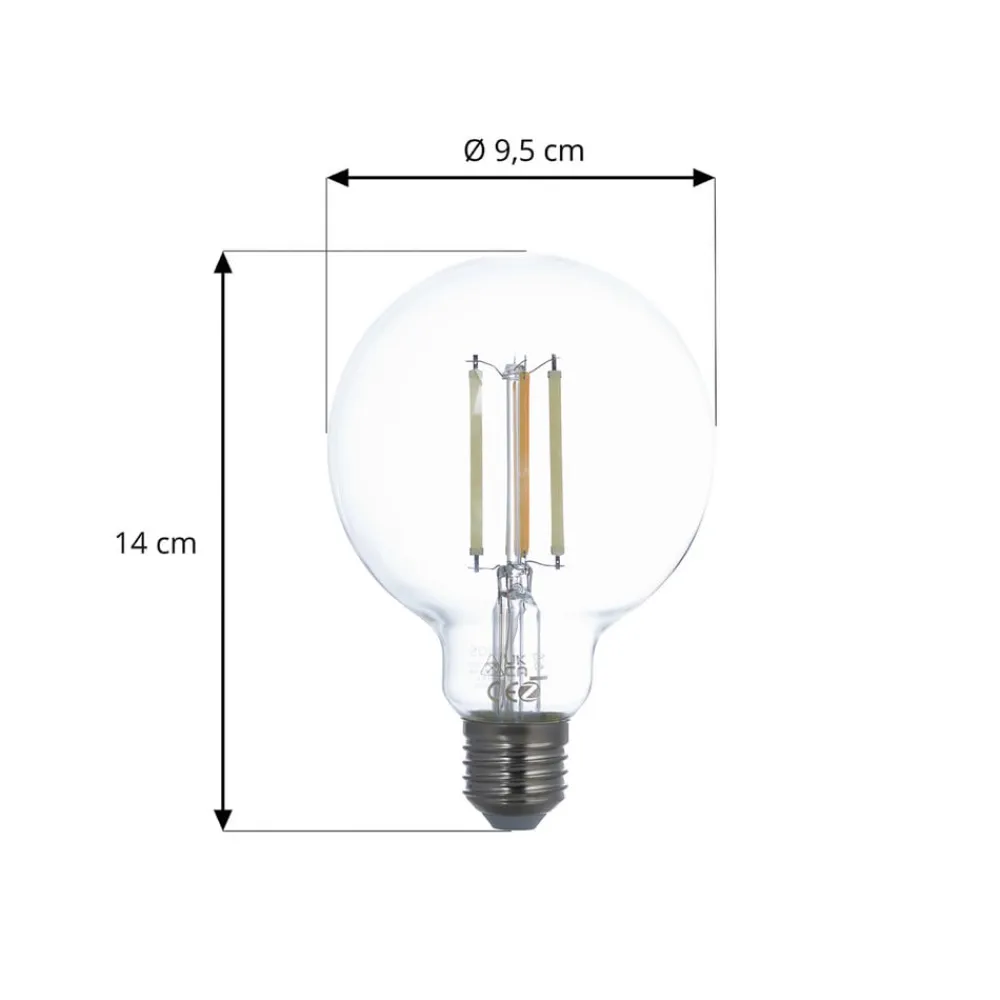 LED-filamentpære med E27-sokkel – kan styres via ZigBee, Tuya og Philips Hue Denne filamentpære passer til E27-fatninger og kan nemt styres med ZigBee, Tuya eller Philips Hue og integreres i et kompatibelt smart home-system. Den har en CCT-funktion og kan generere en lysfarve fra varmhvid (2.700 K) til dagslys (6.500 K) – 320° strålevinkel – dæmpbar – leveres i et praktisk sæt med 2 Pærerne kan også styres ved hjælp af LUUMR APP. Den findes til både Android og Apple og kan nemt downloades på https://play.google.com/store/apps/details?id=luumr.app&hl=en_US eller https://apps.apple.com/de/app/luumr/id6470302637