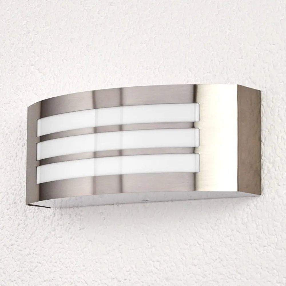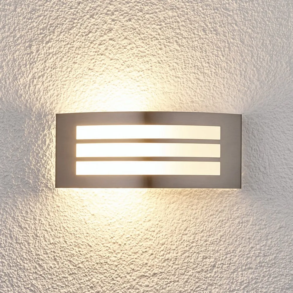 Udendørsvæglampen Raja med stel i rustfrit stål i stribe optik
