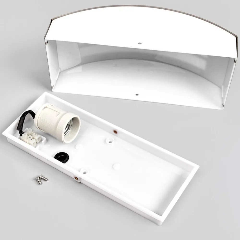 Raja passer særligt godt til moderne omgivelser og udgør der en passende udendørsbelysning. Udendørsvæglampen kombinerer et stel i rustfrit stål med en satineret diffusor i polykarbonat. Inden i befinder der sig en fatning til en E27-pære, hvortil der kan bruges LED- eller energisparepærer. Stribedesignet på forsiden af udendørsvæglampen virker særlig smart og gør den meget dekorativ.