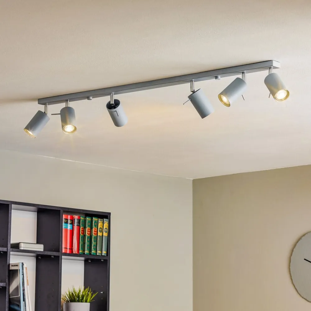 Loftspot Round i elegant grå kombinerer moderne design med funktionel alsidighed. Denne spotlight med 6 lyskilder er fremstillet af højkvalitetsstål og passer perfekt ind i forskellige boligområder som stuen, entreen, køkkenet og spisestuen. Den lineære placering af lamperne sikrer en jævn belysning og sætter stilfulde accenter i ethvert rum.