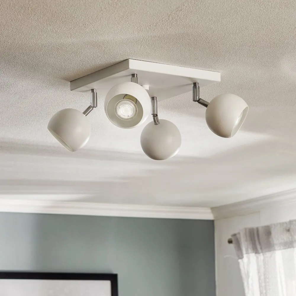 Loftspot Flame, hvid, 4 lyskilder, firkantet, forener moderne design med funktionel fleksibilitet. Denne spotlight er fremstillet af højkvalitetsstål og passer perfekt ind i forskellige boligområder som stuer, entreer, soveværelser og spisestuer. Den klare, hvide farve understreger den tidløse elegance og sikrer en harmonisk integration i forskellige indretningsstilarter.