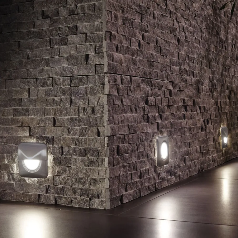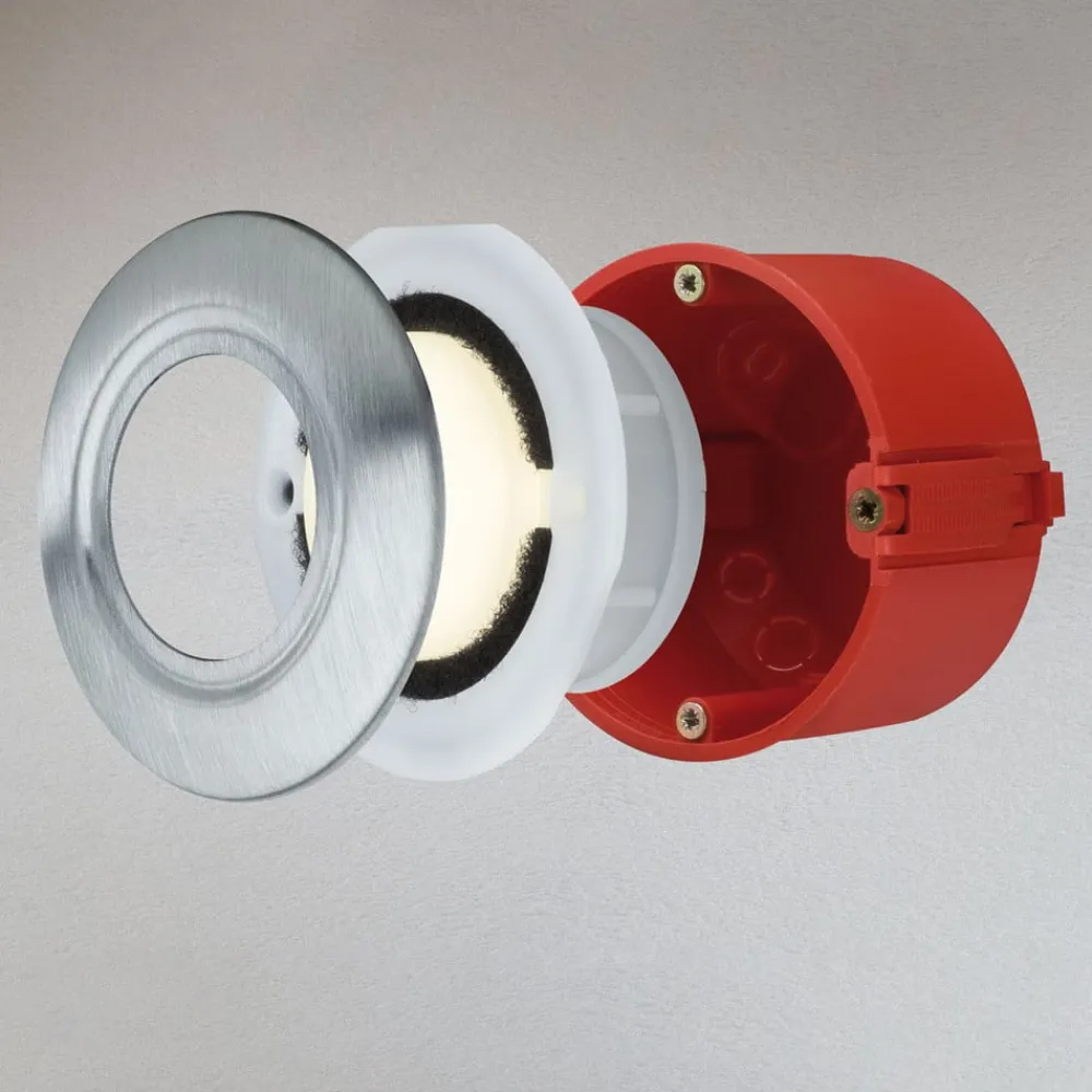 Indbygningslampen Special Line til vægge fungerer godt som dekorativt lyselement eller som sikkerhedsbelysning i gange og på trapper. Lampen er fremstillet af polykarbonat og kan med sin lave mindste indbygningsdybde på blot 2,3 cm anvendes i enhver almindelig indbygningsdåse med 6 cm diameter. Takket være IP65-beskyttelse er lampen beskyttet mod vandstænk og kan ligeledes anbringes i vådrum og på udendørsarealer.