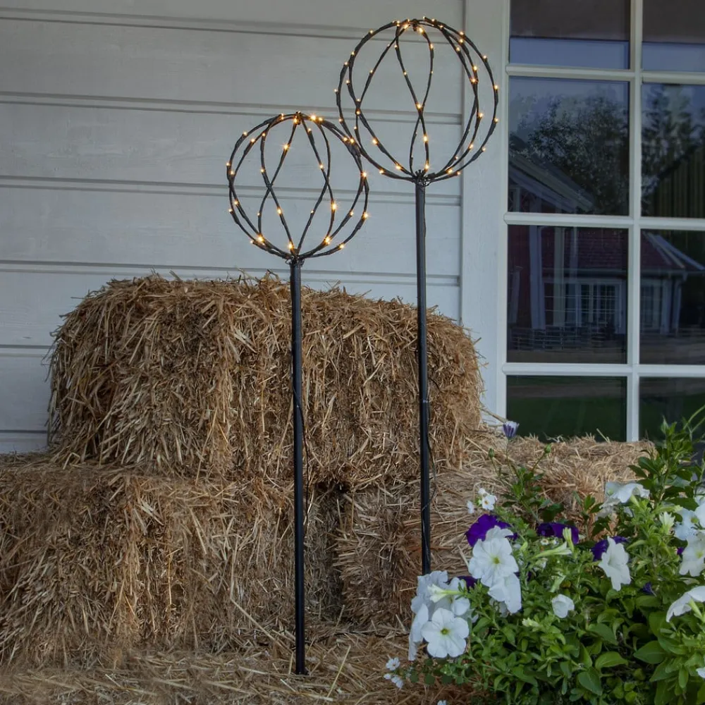 Sphere LED-lampe med jordspyd, sort, metal, sæt med 2 stk^STAR TRADING Outlet