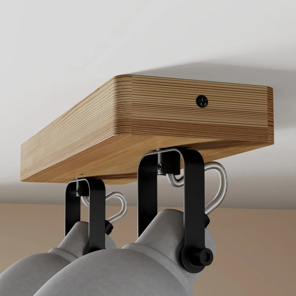 I et trendy industrielt design: Mitis loftspot Mitis er en loftlampe, der helt sikkert vil imponere takket være sit særlige design. Loftbeslaget er lavet af fyrretræ, som giver lampen et særligt flot udseende takket være dets naturlige årer. Designet afrundes af lampeskærmene i beton, som gør lampen til et stilfuldt indretningselement. Matchende GU10-pærer fås separat via tilbehøret.