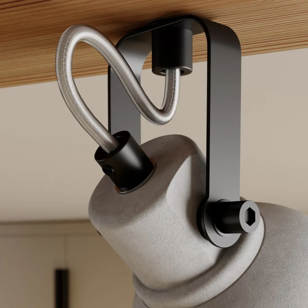 Trendy Mitis loftlampe af beton, dæmpbar Mitis loftlampe er lige i øjet takket være de smukt formede lampeskærme af beton og det mørke, naturligt udseende fyrretræsarmatur. Lampen er et perfekt udtryk for industrielt design og supplerer en moderne stue eller spisestue. De fire flammer spotlighter i forskellige retninger afhængigt af deres orientering, hvilket sikrer optimal belysning med et hyggeligt lys. Lampen kan udstyres med dæmpbare pærer.